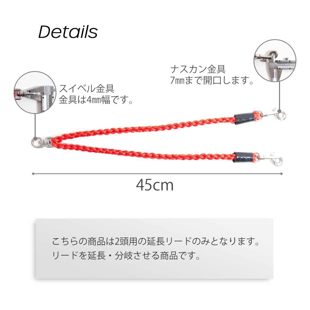 【2頭のワンちゃんとラクラクお散歩】手元は1本のリードで、2頭の愛犬とのお散歩を楽しめる便利なダブルリードです。お手持ちのリードと首輪の間に接続するだけのシンプル設計が使いやすいポイント。 ※首輪とリードは別売りです。