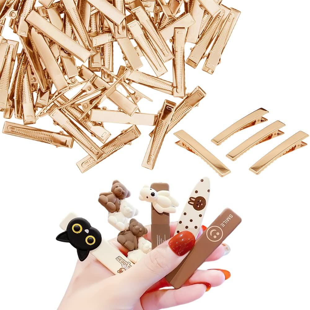 【数量限り】サムコス 約50個入り ヘアクリップ クリップ 土台 金具 パーツ 髪留め ヘアピン DIY ハンドメイド ヘアアクセサリー デコ素材 大人 業務用 手芸用品 (ゴールド約4.6cm)