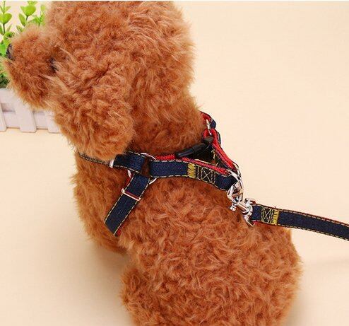 丈夫なデニム素材を使用したハーネス&リード&首輪&トートバッグの4点セットです。小・中・大型犬用 4色 4サイズございます。すぐ成長してサイズがあわず使えなくなってしまう大型犬でも、子犬のときからお使いいただけます! 買い替え不要で長くお使いいただくことができます。