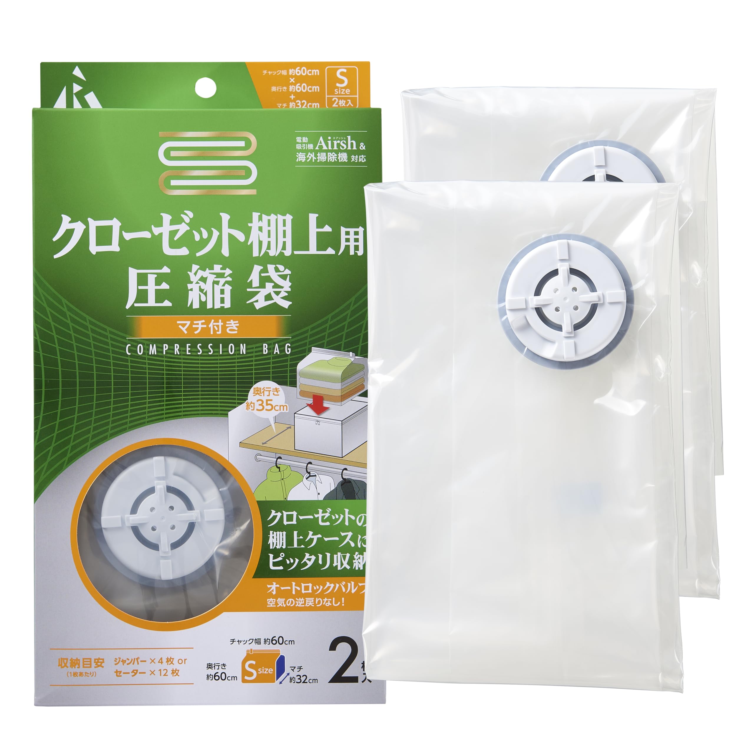 アール(R) 圧縮袋クローゼット棚上用 圧縮袋 透明無地 60×60×32(cm) バルブ式 繰り返し使用可能 2枚 RE-011