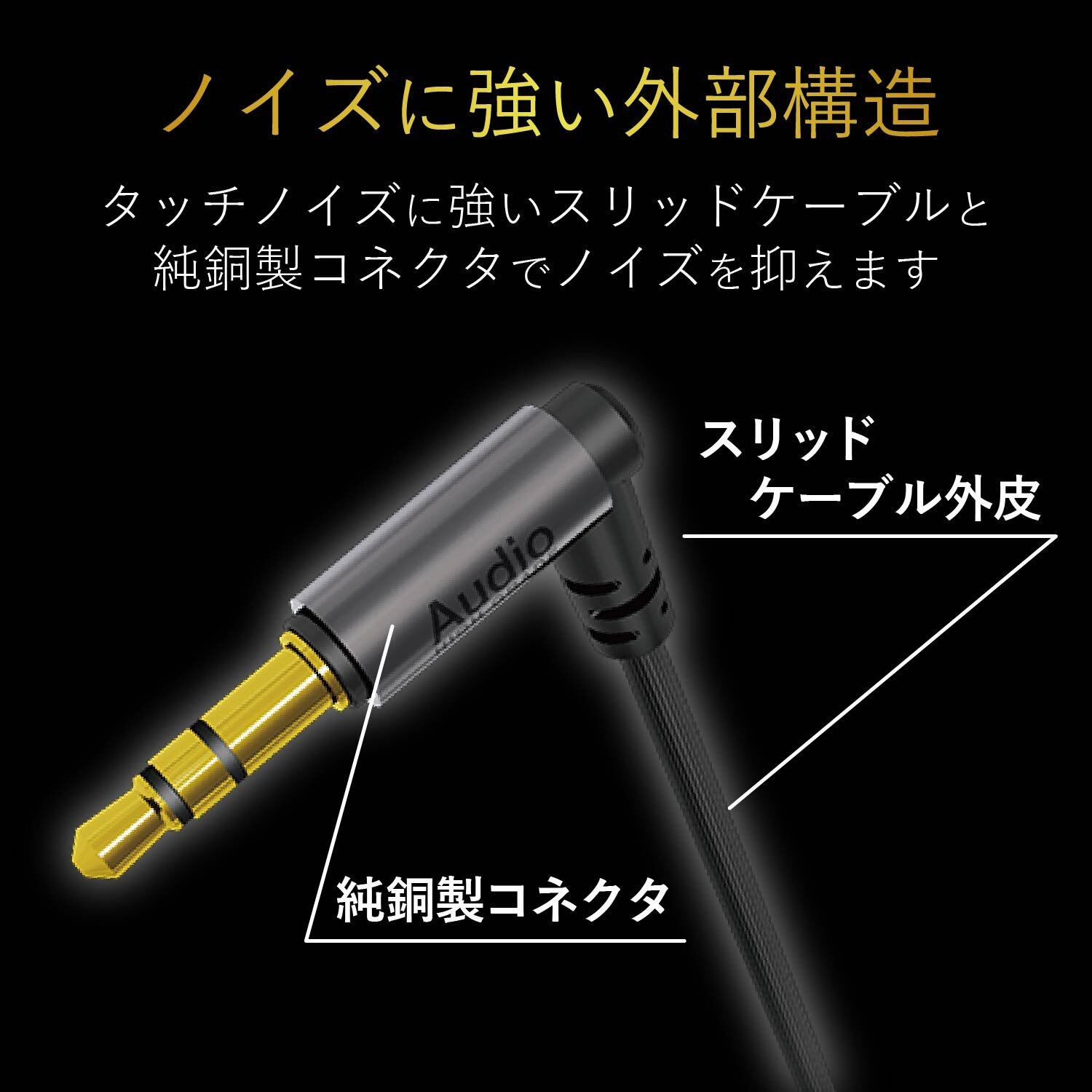 ■ 耐久性が高く、スマートフォン・オーディオプレーヤー本体を操作する際に邪魔になりにくいL字コネクタを採用しています。
