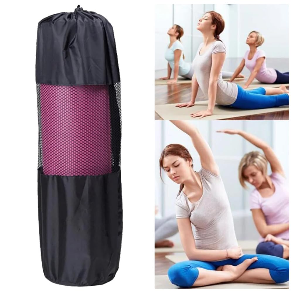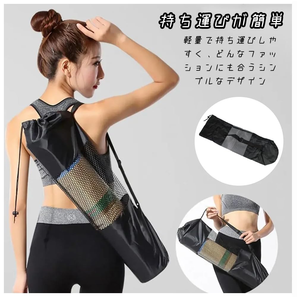【努力特価】ヨガマットケース ヨガマットバッグ ヨガマット収納バッグ ヨガ用品 25×72cm 黒 メッシュバッグ 簡易収納 多機能ストレージポケット 肩掛けヒモ 持ち運び便利 収納バッグ 学校 フィットネス