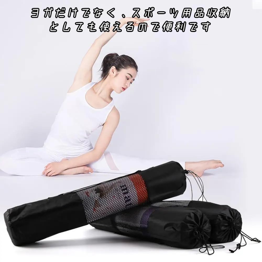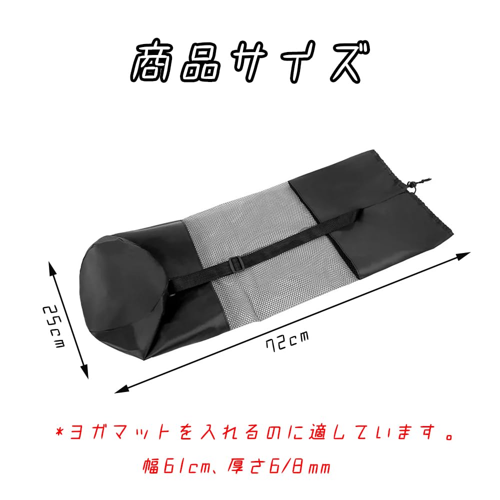 ヨガマットケース ヨガマットバッグ ヨガマット収納バッグ ヨガ用品 25×72cm 黒 メッシュバッグ 簡易収納 多機能ストレージポケット 肩掛けヒモ 持ち運び便利 収納バッグ 学校 フィットネス