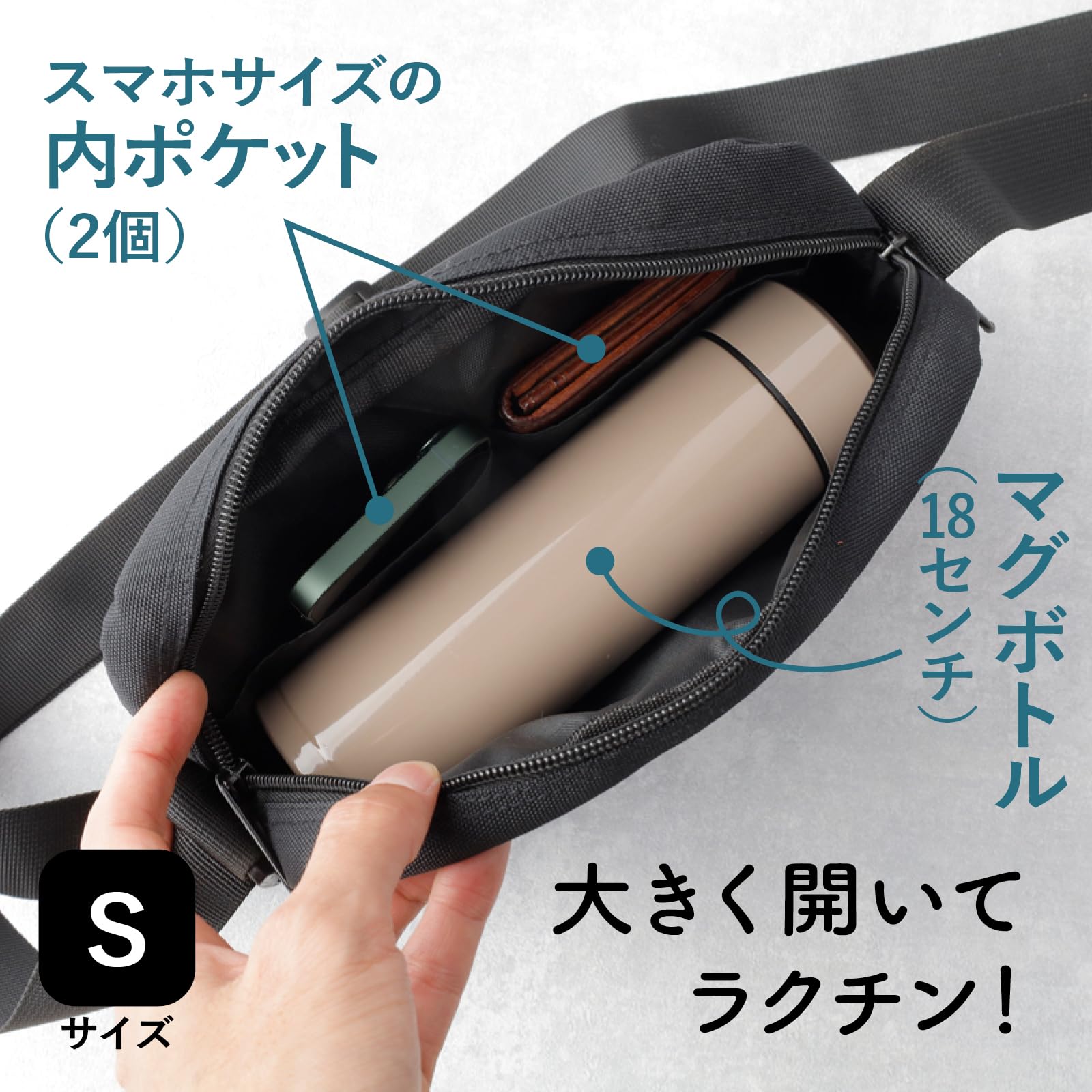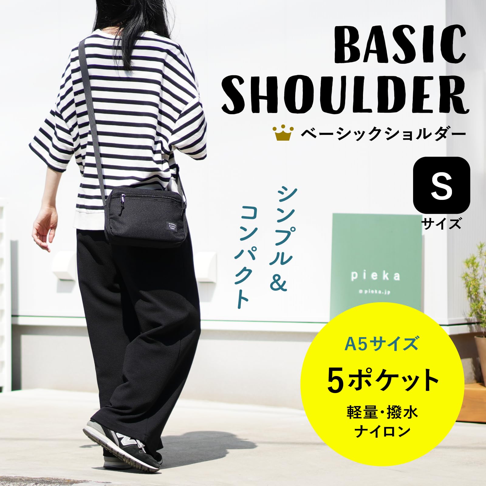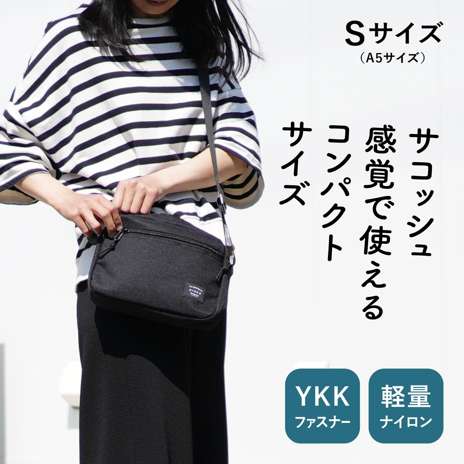 [pieka] ショルダーバッグ メンズ 軽量 斜めがけ 5ポケット >> 動画でサイズや使用感をチェック! 【シンプルベーシック】使い勝手にこだわった小さめショルダーバッグ。サコッシュ感覚で使えます 【小さめコンパクト】横幅22cm、高さ16cm、奥行き6cm、ストラップ長さ調整可、最大130cm。A5ノートや小さめペットボトルを収納できます 【軽量190g】軽量ナイロンで肩掛けラクチン 【5ポケット】外ポケット3つ、内ポケット2つ。強度の高いYKKファスナーにリニューアル!