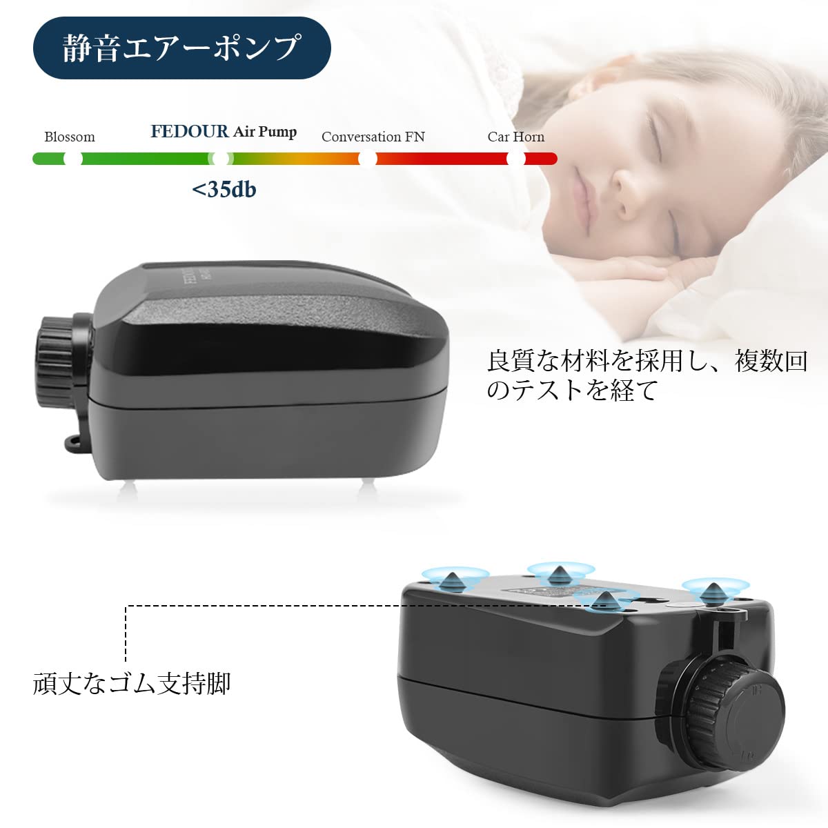 【数量限り】FEDOUR 2つ吐出口の静かな水槽エアーポンプ 4W可調節 水槽に酸素提供 アクセサリー付きエアポンプ (黒色)