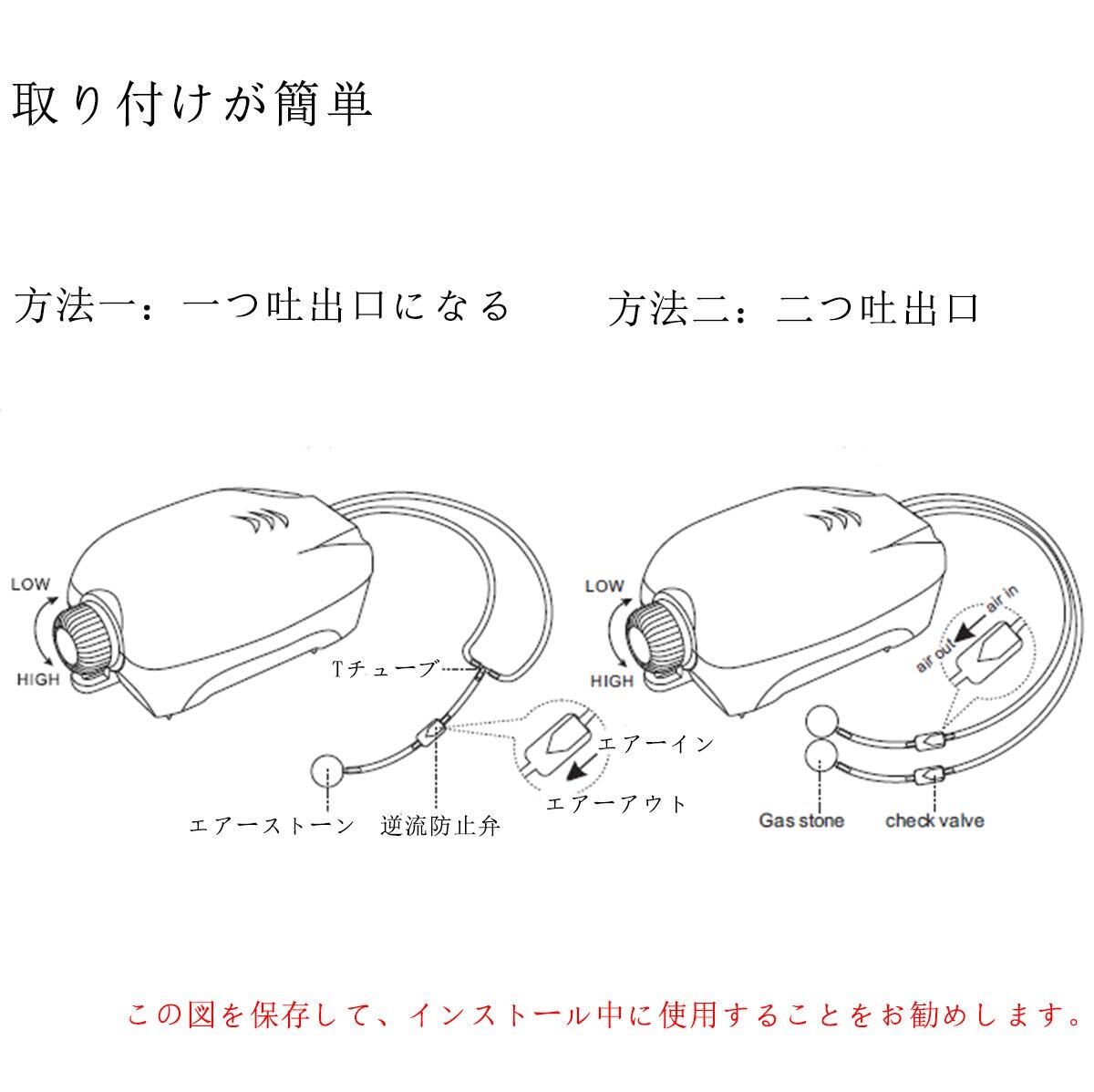 完全なアクセサリーがあり、2つの逆流防止弁、2つのエアストーン、2つの1.5Mエアーチューブ、1つのT型連結チューブ、1つのエアフィルターコットン、必要なものすべてがある。