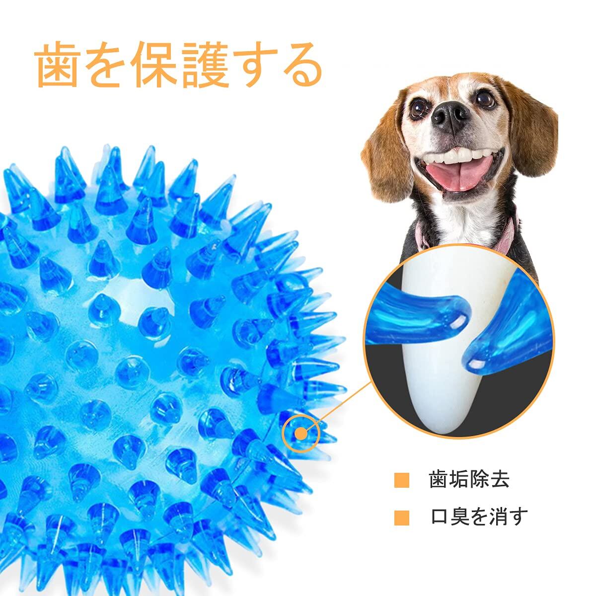 ?4.【清潔に保つ】ワンちゃんがボールを噛むことにより歯茎と歯をお掃除でき、普段のお手入れは、さっと水で流すだけで、より清潔に保つのを助けます。
