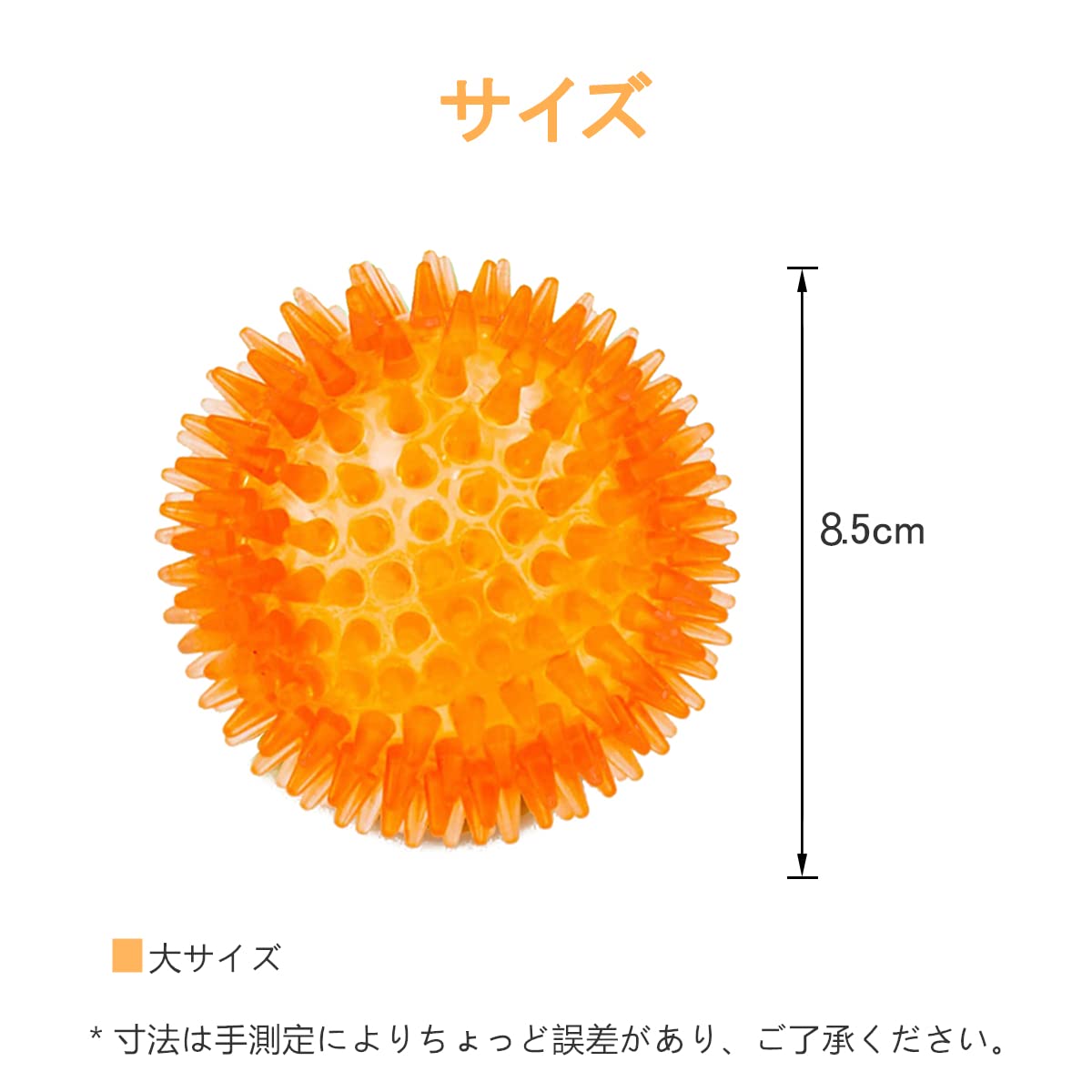 ?1.【製品仕様】お得な犬用おもちゃボール3色3個セット、サイズ:8.5㎝、カラー:オレンジ、グリーン、ブルー。