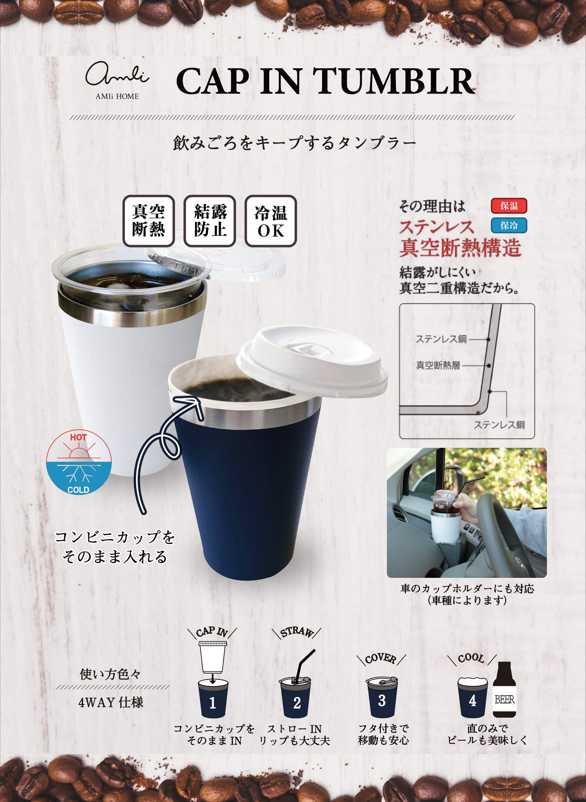 保温・保冷性に優れた真空断熱構造のカップインタンブラーと優れた吸水性と安全性の今治タオルのセットです。 カップインタンブラーは、コンビニのコーヒーをカップごと入れておけばおいしい温度が長続きします。 二重構造になっているので、車のドリンクホルダーやデスクの上でご使用いただいても、 水滴が垂れずに快適にお使いいただけます。木箱にいれてお届けいたしますので、プレゼントにもおススメです。