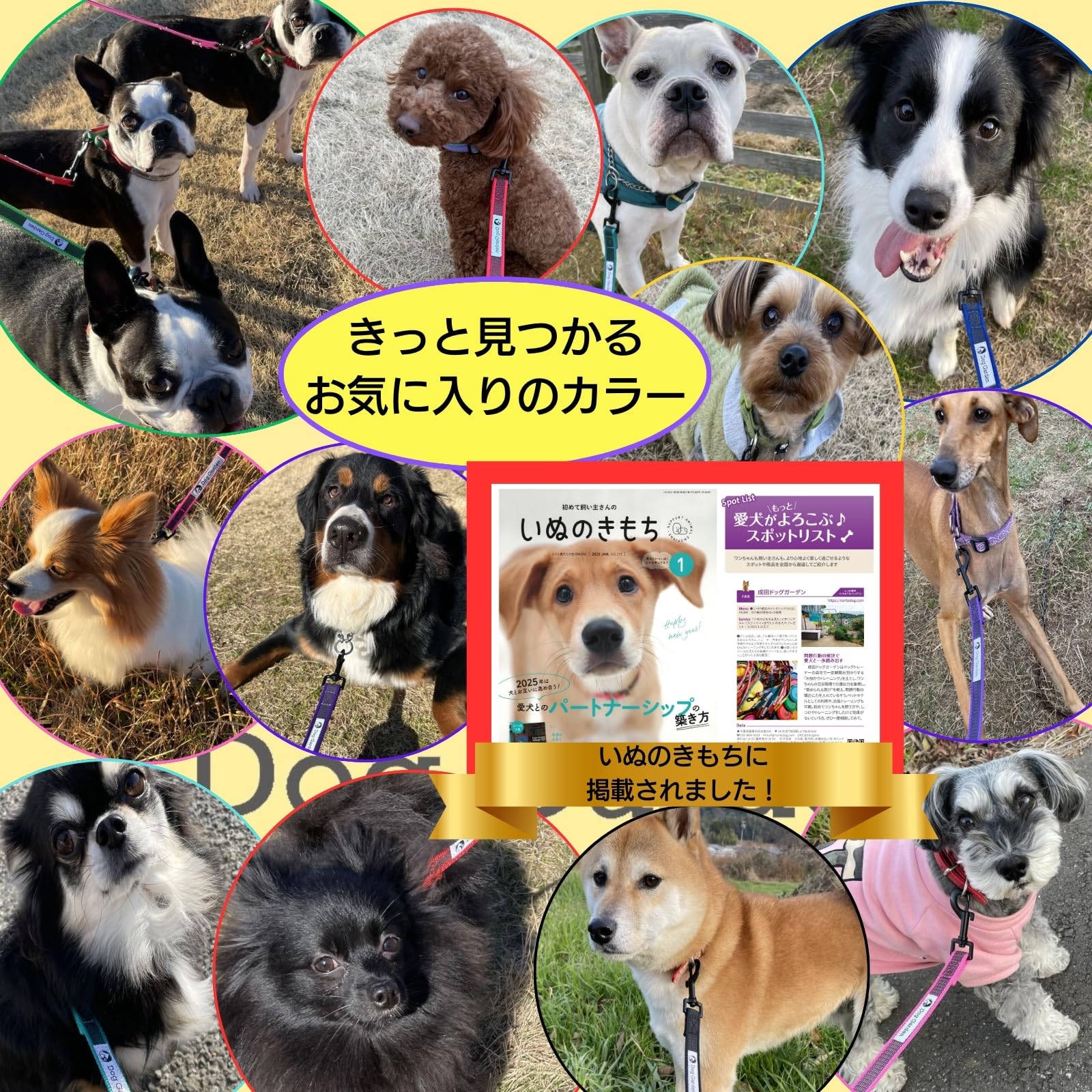 犬のしつけ訓練競技会などでも人気。トレーニングに最適。昔からあるリードをDogGardenがカラフルにしました!
