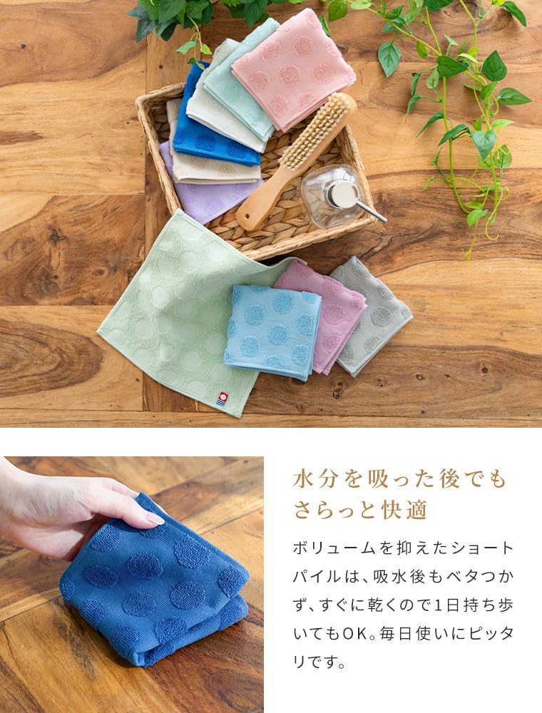 【水分を吸った後でもさらっと快適】ボリュームを抑えたショートパイルは吸水後もベタつかず、すぐに乾くので1日持ち歩いてもOK。毎日使いにピッタリです。