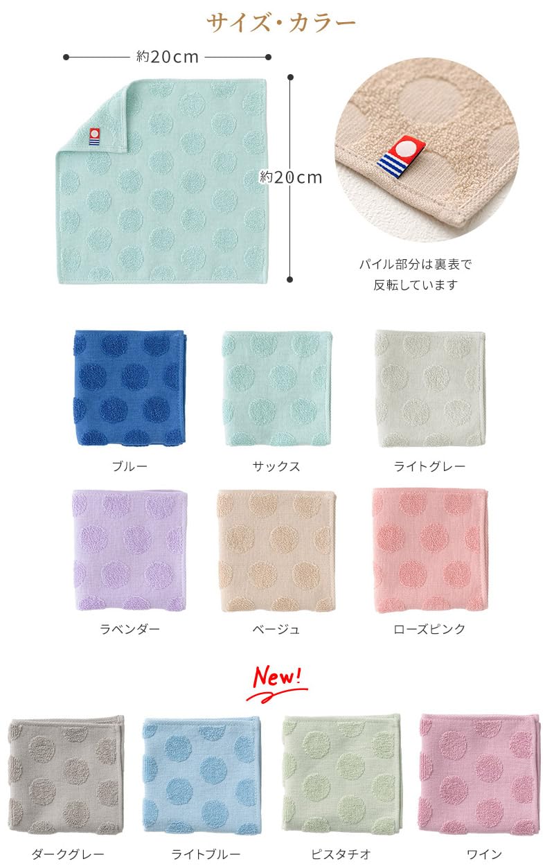 【今治タオルが認める品質水準】今治タオル工業組合独自の品質水準を全てクリアした、コットン100%の柔らかな手触りのタオルハンカチ。赤ちゃんや敏感肌の方も安心してお使いいただける、優しいタオルです。