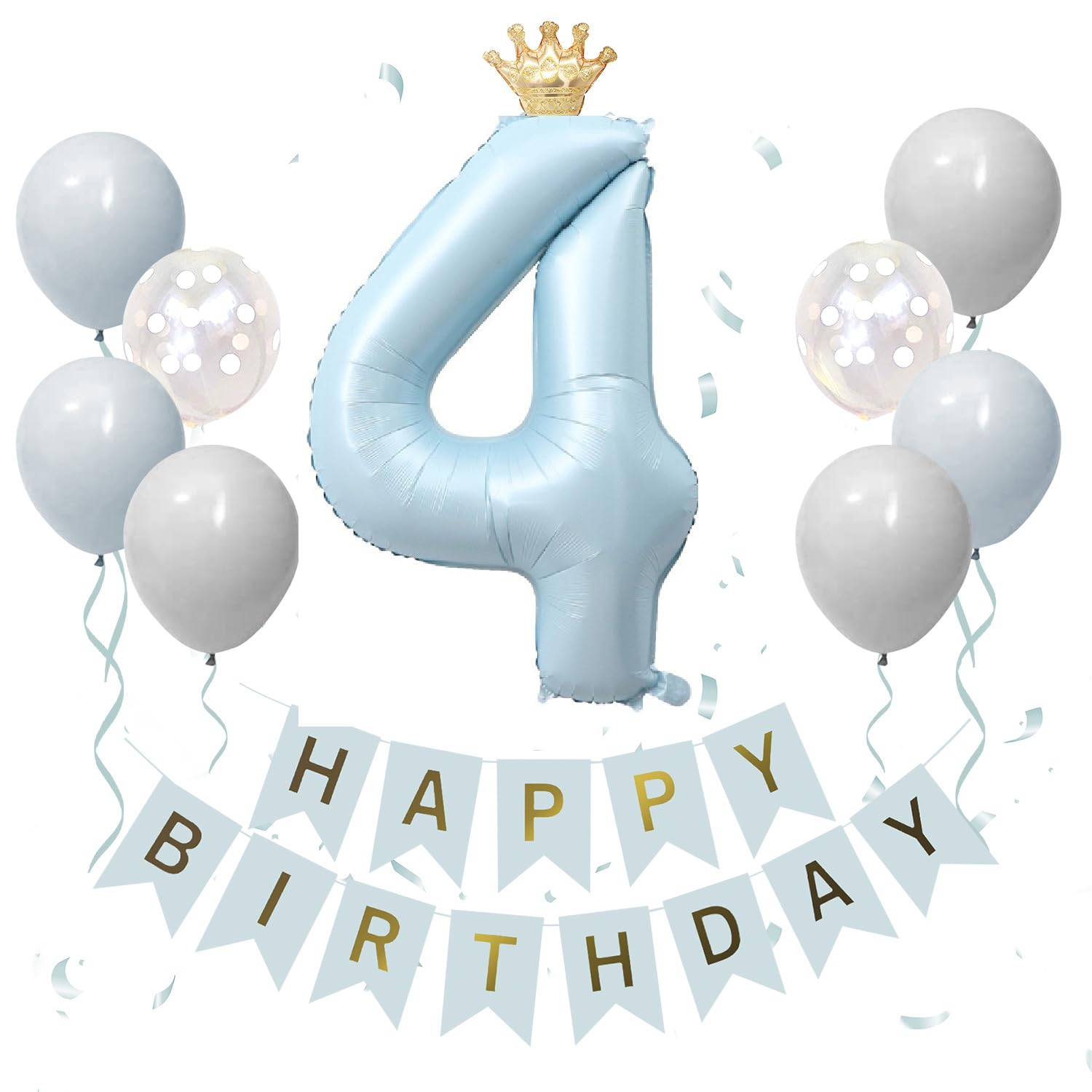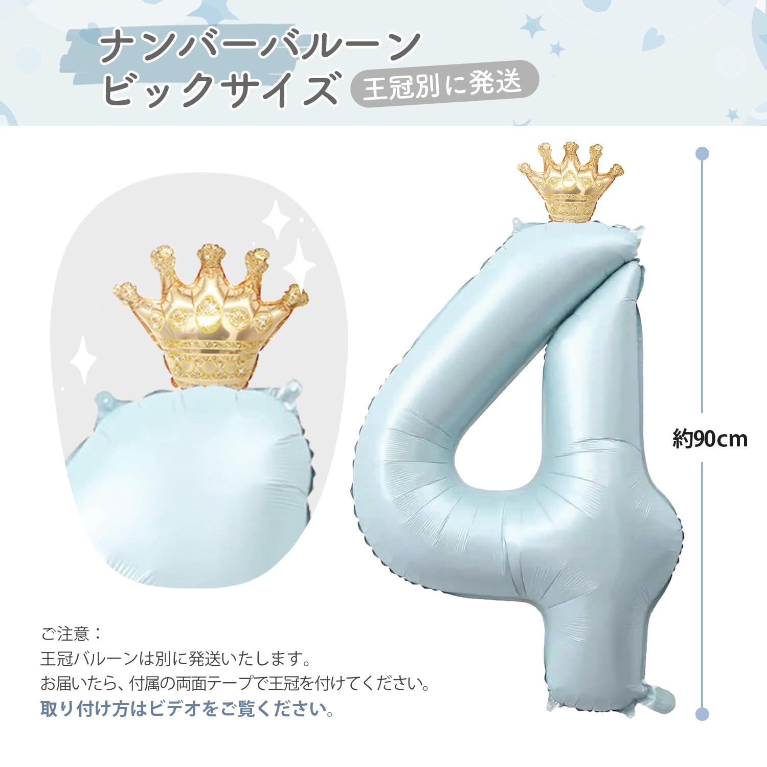4歳 誕生日 飾り付け babyblue 大きい 数字 風船 40インチ 誕生日 飾り 風船 セット 四歳 ナンバーバルーン 王冠 バースデーバルーン 4 くすみブルー