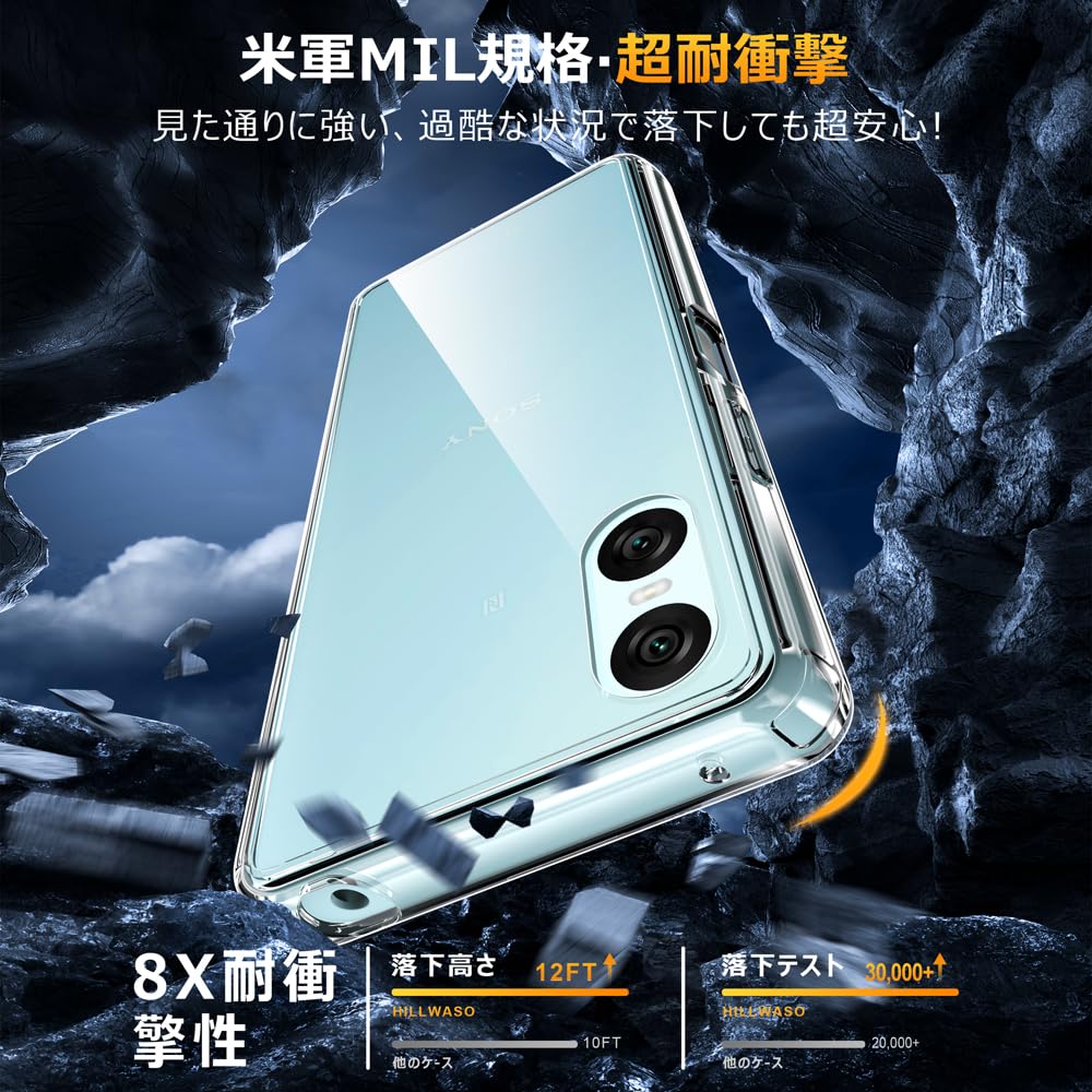 【在庫のみ】【Diamond Series】HILLWASO SONY Xperia 10 VI 用 ケース クリア 耐衝撃性! 全透明! 四隅滑り止め レンズ保護 黄変防止 米軍MIL規格 薄型 頑丈PC背面+ TPU ストラップホール付き 傷防止 指紋防止 スリム 耐久