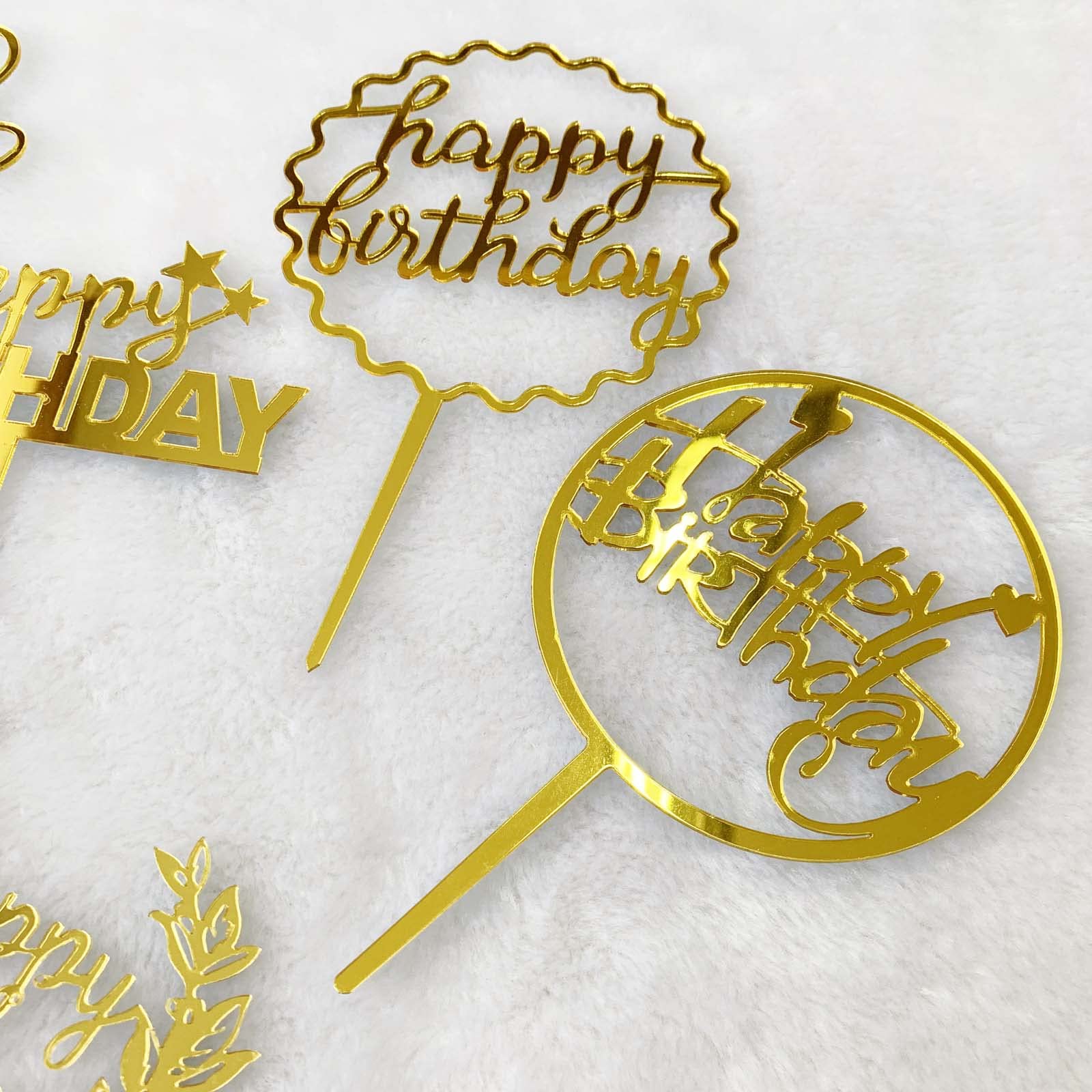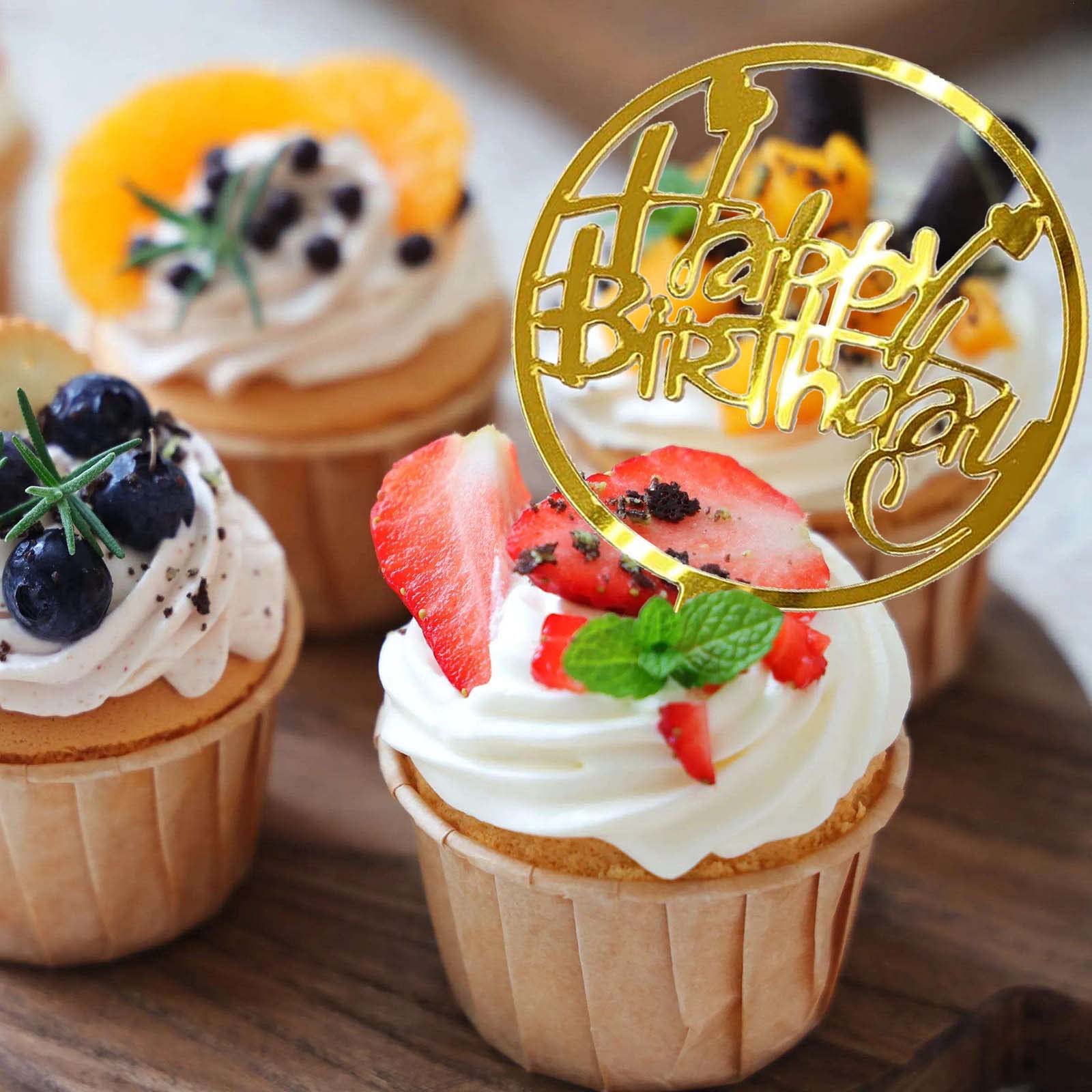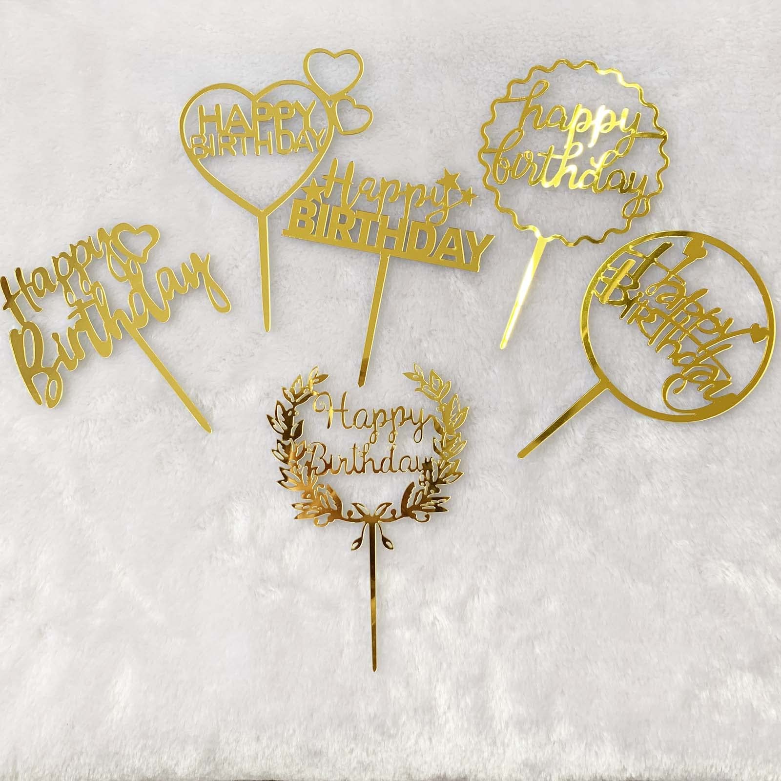 6個 Happy Birthdayトッパー お誕生日 パーティー ケーキ デザート 装飾用 お祝い デコレーション ゴールド
