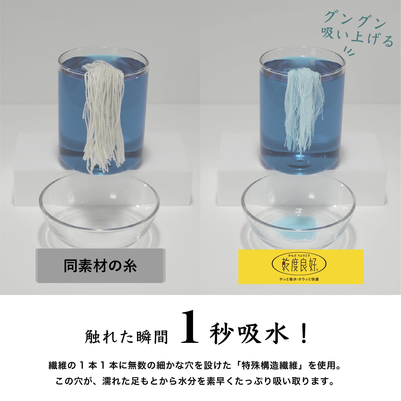 水には、狭い隙間に入り込んでいく性質があります。乾度良好Rは、繊維1本1本に無数の細かな穴を設けた「特殊構造繊維」を採用しており、この穴が濡れた足もとから水分を素早くたっぷり吸い取って直ちに拡散するため、マットの表面はいつもサラッと快適です。