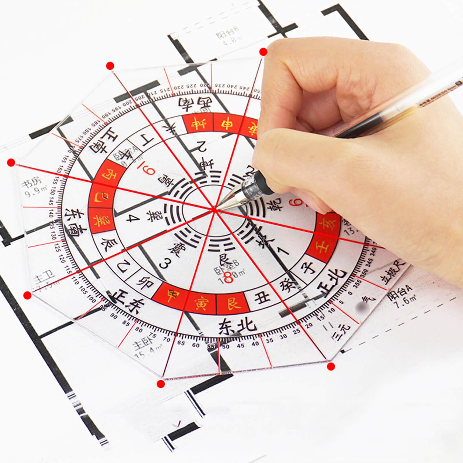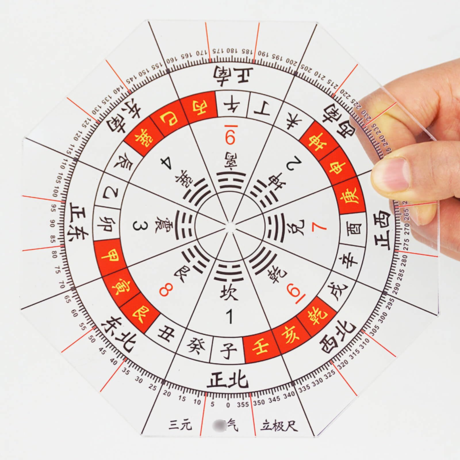 方位分度器 八角形 15cm 全透明 8角形分度器に東西南北 全円分度器 透明方位盤 玄空飛星 八宅風水 風水羅盤透明シート 家相 地相 干支 方位 分度器 九星 気学 八方 【サイズ】15*15cm 【素材】プラスチック 【色】透明 【機能】15cm全円分度器に東西南北、干支による方位を付した分度器です。 【適用場合】専門家による風水診断、建築計画、土地選びに最適です。