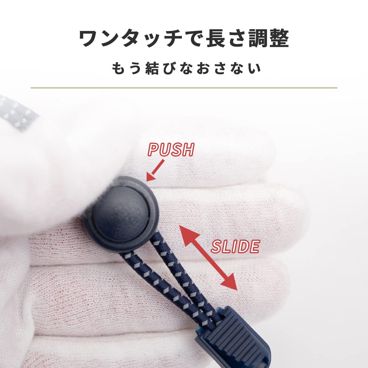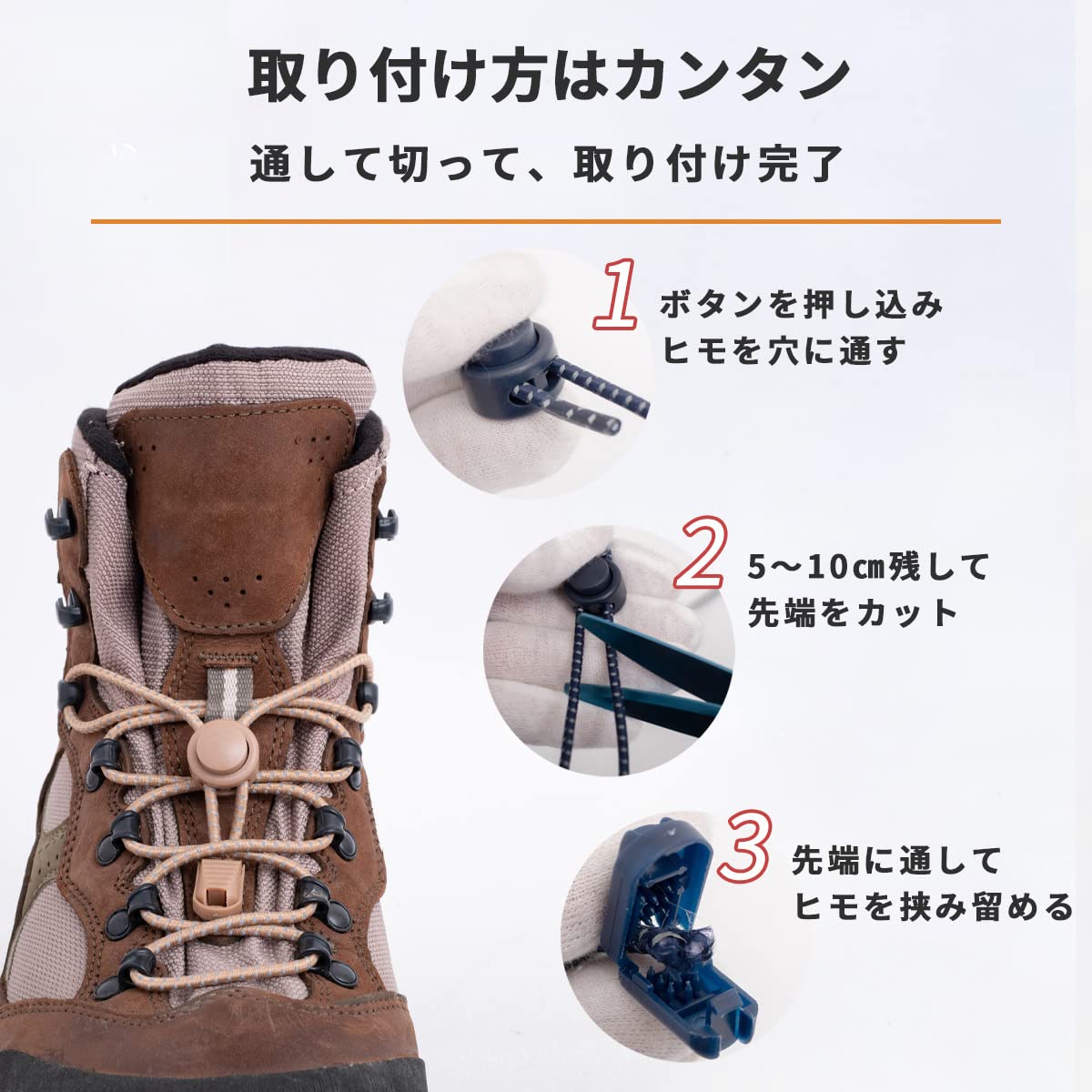 【ほどける心配のないロック式靴紐】 靴の脱ぎ履きが驚くほど楽になる、ロック式靴紐です。一度調節すればわずらわしい紐の結び直しがなくなり、カジュアルシューズはもちろん、スポーツやアウトドア用スニーカーにもお勧め。小さなお子様や、しゃがむのが難しい高齢の方の靴にも最適です。