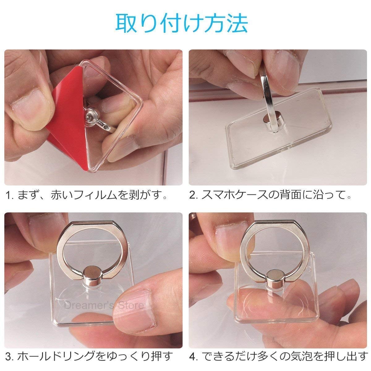 【人気】スマホリング バンカーリング 【mau qualite】 クリア 携帯 透明 薄型 ホールド 落下防止 スタンド機能 360回転 iPhone/Android各種他対応【1つ】(シルバー)