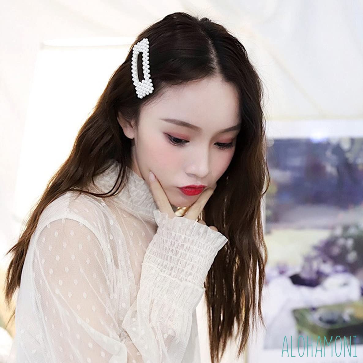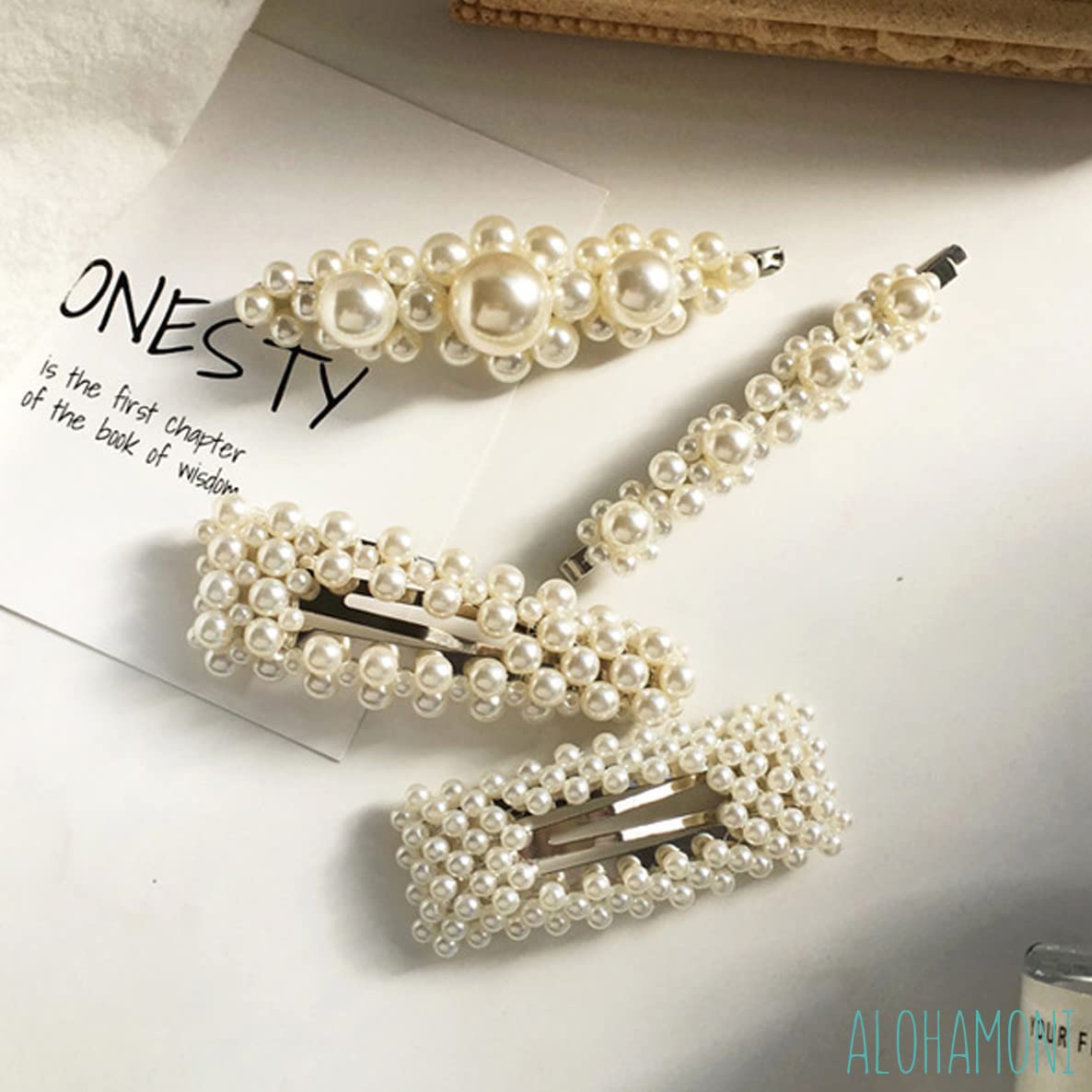 [ALOHAMONI] パール ヘアクリップ リッチパール ヘアピン バレッタ バナナクリップ ビッグ 大ぶり スリーピン パッチン留め 前髪 ヘアアクセサリー 髪留め 髪飾り 韓国 オルチャン (三角)