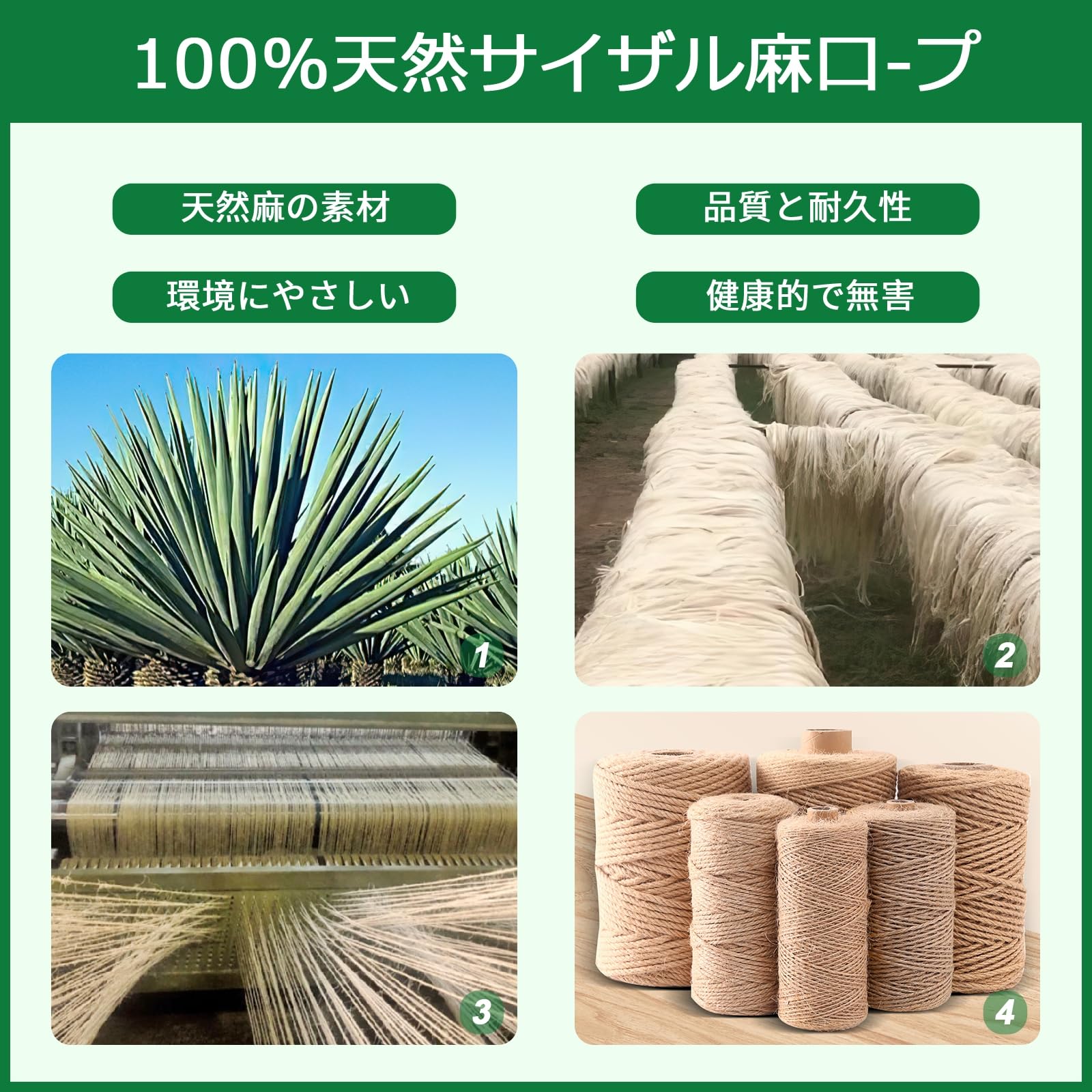 【天然素材】天然麻を採用して作られた麻ひもは環境に優しくて非毒性で分解できて、摩耗性が優れます、ペットと子供がいる家庭も安心にお使えます。天然麻素材は丈夫、100%品質合格で再利用も可能です。