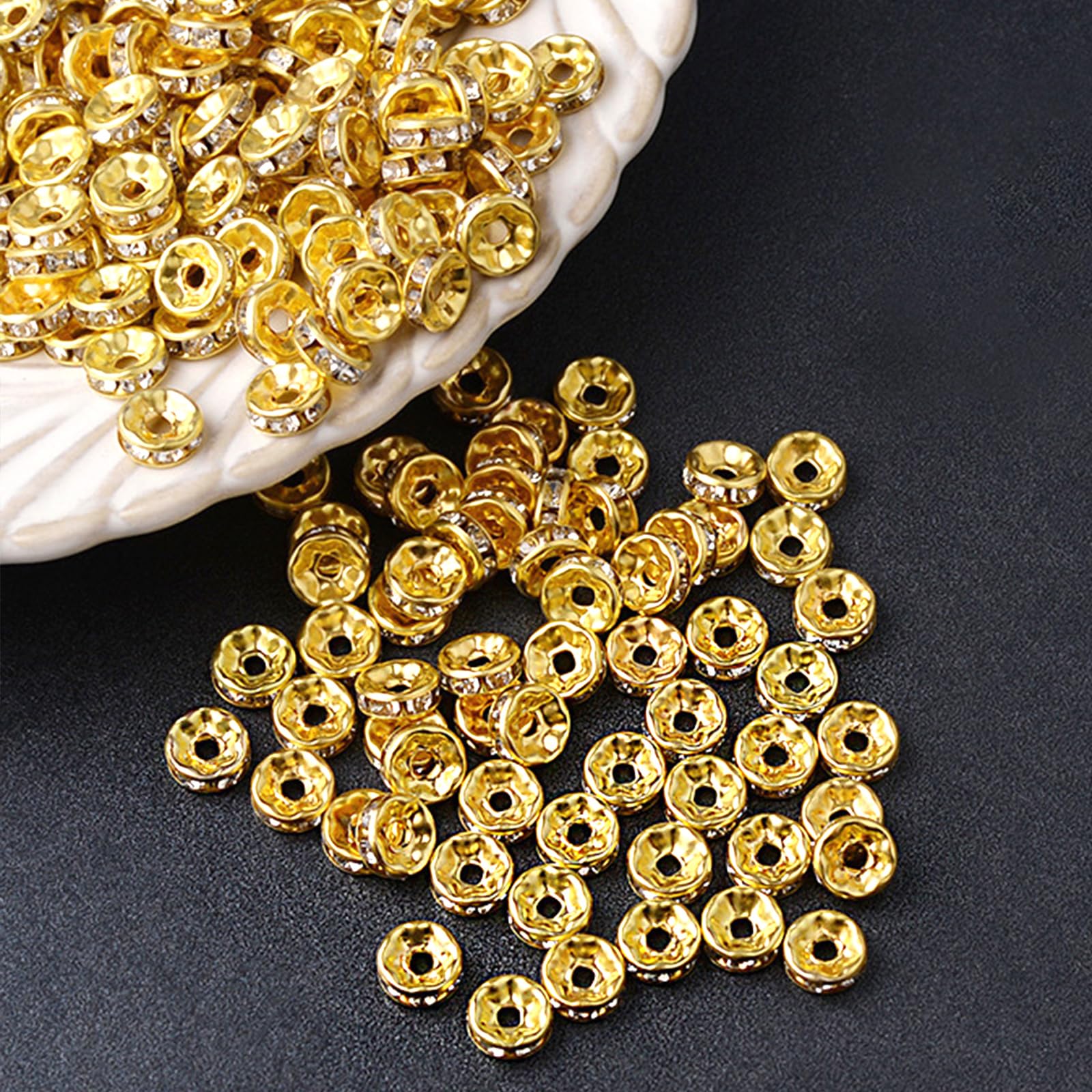 【新着特価】【BEAUTY PLAYER】ロンデル 8mm 平型 200個 ゴールド シルバー 各100個 ラインストーン付き スペーサービーズ メタル ビーズ アクセサリーパーツ ジュエリー 手芸 クラフト用品 手作り素材 DIY材料 (8mm)