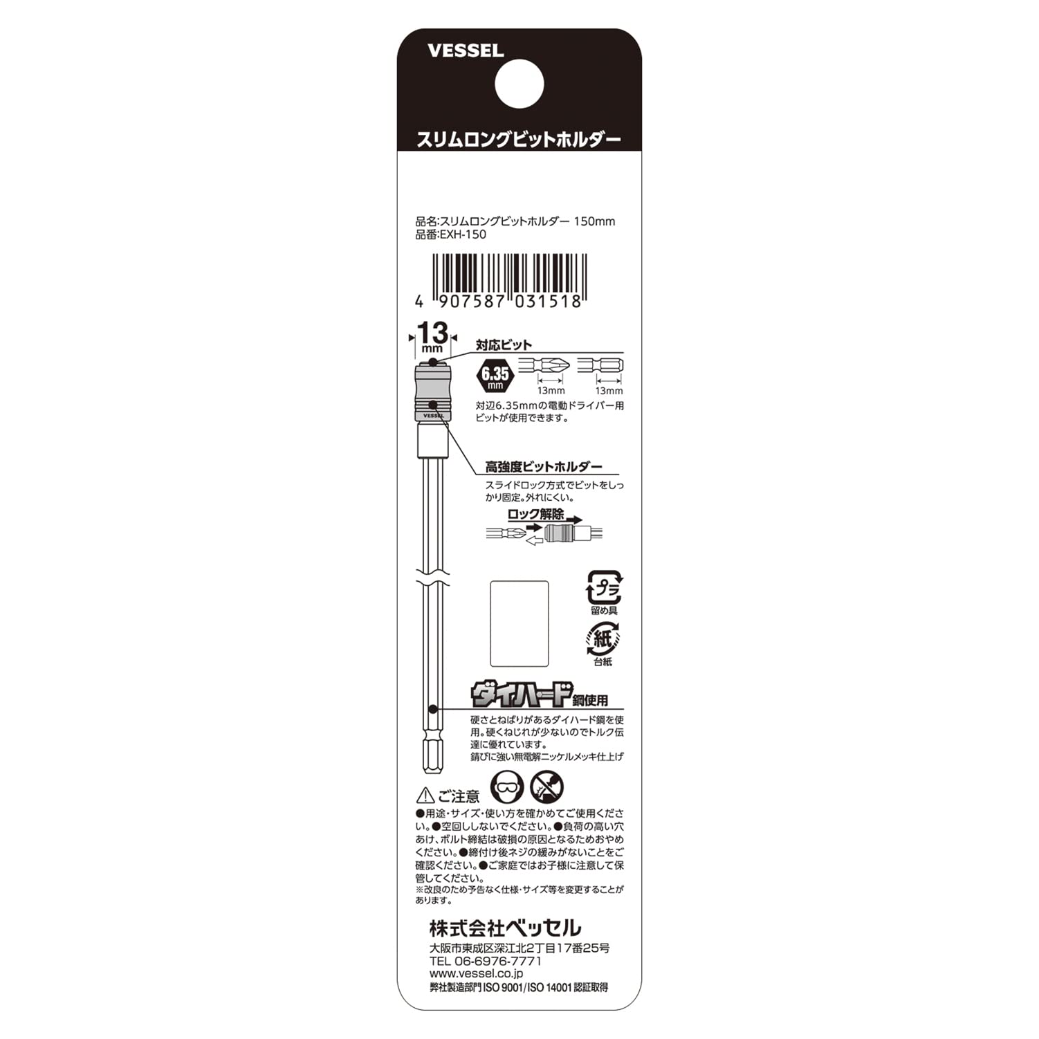 【在庫のみ】ベッセル(VESSEL) 40V対応 スリムロングビットホルダー 電動工具用 6.35×150mm EXH-150