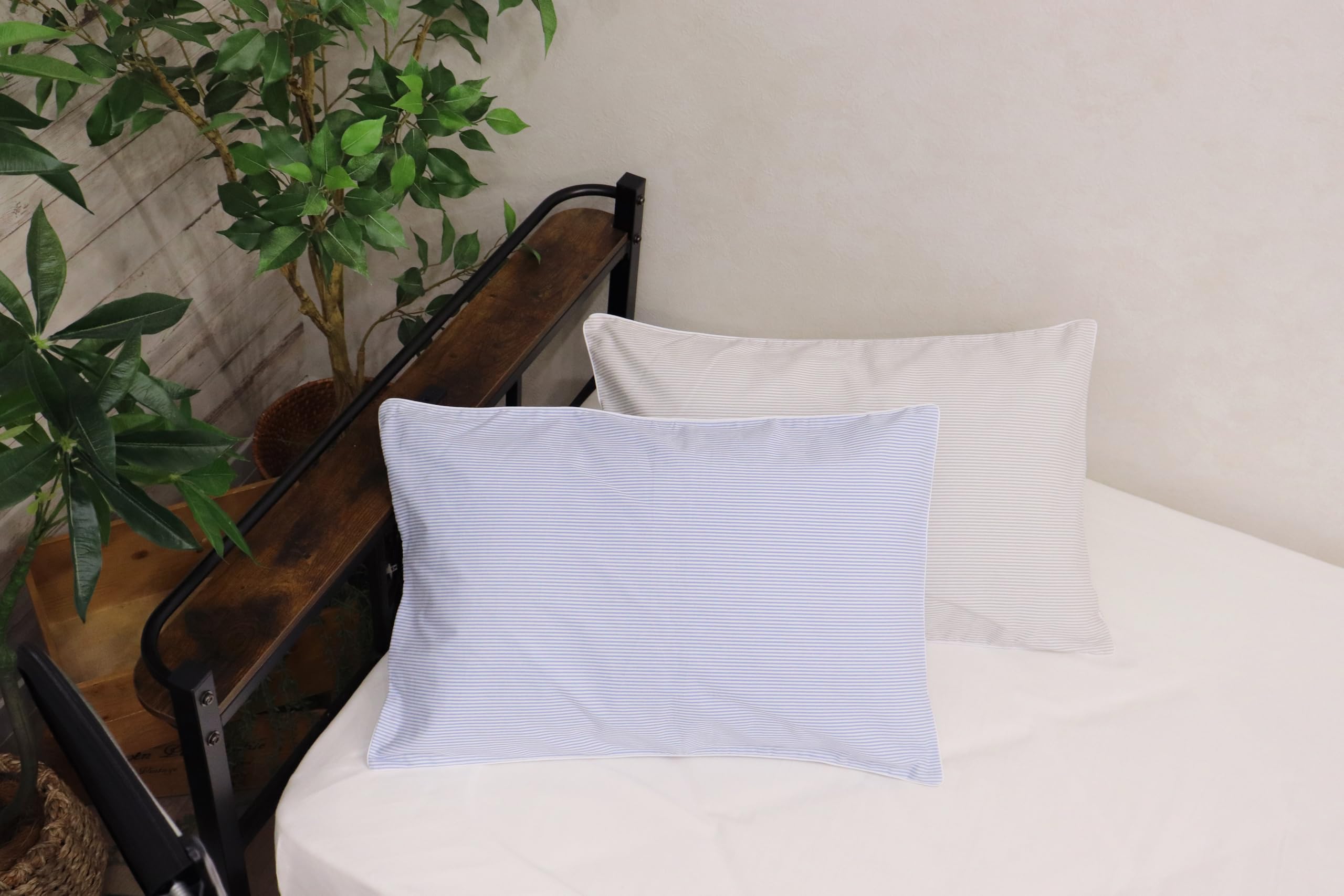 CAMEL PALMS 日本製 綿100% まくらカバー ピローケース ファスナー式 適度な厚さの生地 35×50cm 細ボーダー ブルー