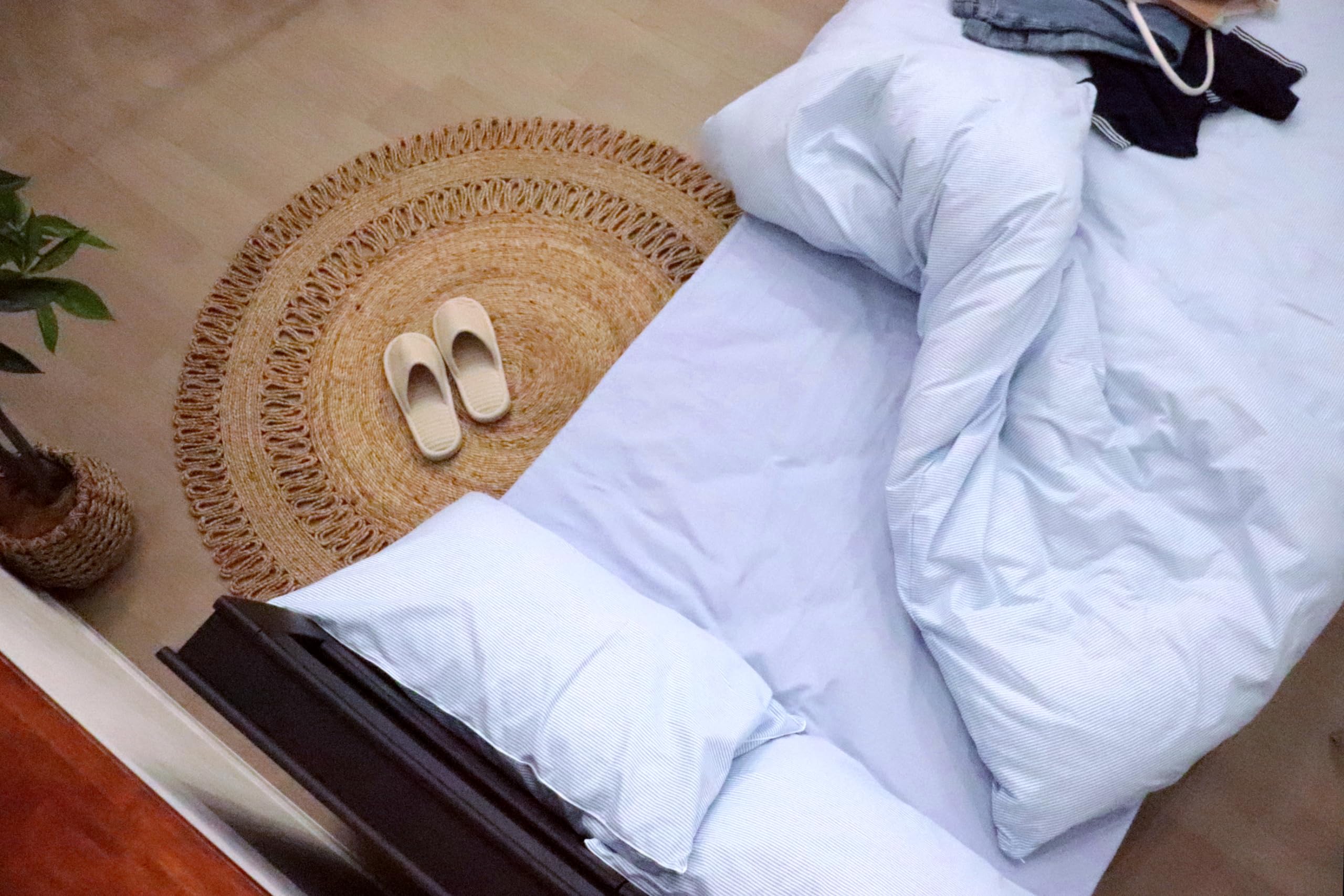 【お手入れ】ご家庭の洗濯機で丸洗いできます(乾燥機不可)。やや縮みやすいので、お洗濯後は4隅を軽く引っ張るような形で干してください。