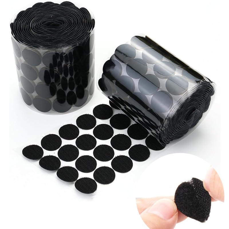 面ファスナー 丸型 強力 マジック付きテープ 両面テープ付き 粘着テープ 円形の直径 100組セット 粘着力強い両面テープ オス メス 強粘着裏糊付 超強力 粘着 耐熱 防水 業務用 DIY用 家庭用 (ブラック30mm(100pcs))