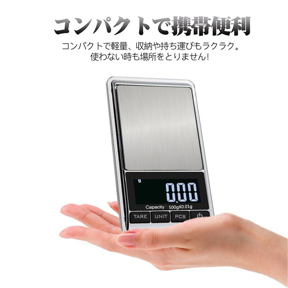 【高精度】:コンパクトで0.01gから500gまで測れます。高感度センサーで、精度が高いデジタルスケールです。コンパクト、収納に便利、使わない時も場所をとりません!