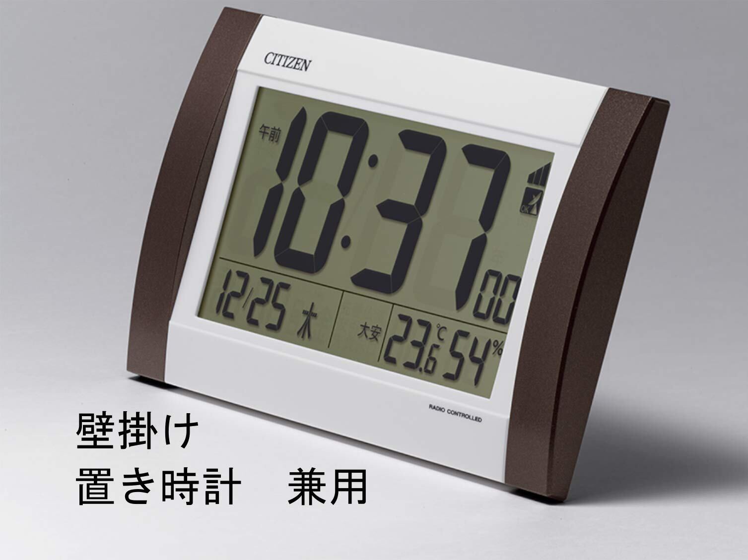 リズム(RHYTHM) シチズン 掛け時計 目覚まし時計 電波時計 デジタル R188 置き掛け兼用 カレンダー 温度 ・ 湿度 表示 茶 24.0×14.8×3.1cm CITIZEN 8RZ188-006