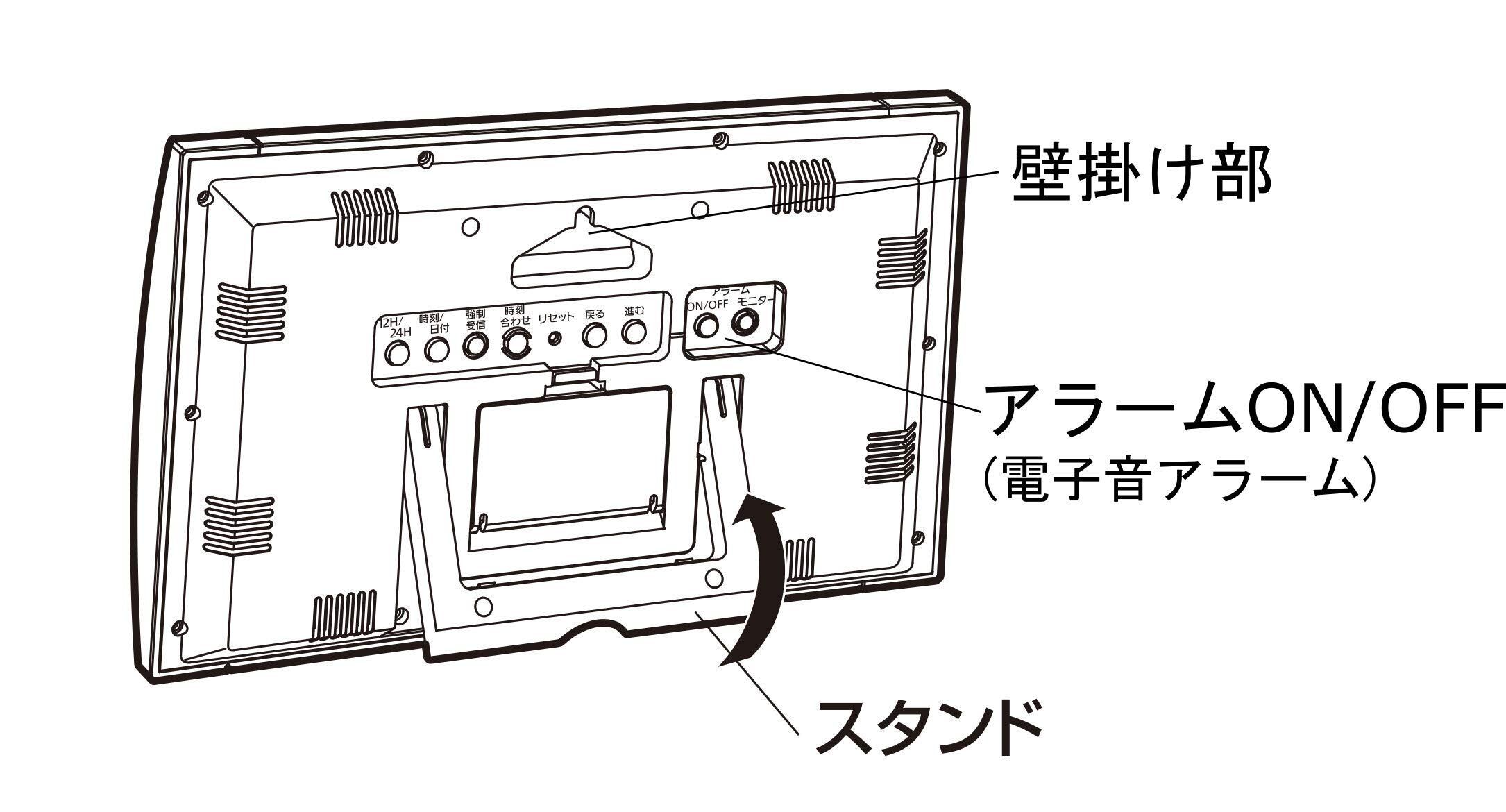 大きく見やすい画面が特長の掛け置き兼用の電波デジタル時計です。