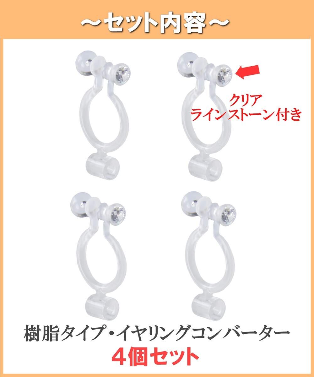 半透明で目立ちづらい 樹脂製 イヤリングコンバーターノンホールピアスタイプ4個セット クリアストーン付き・樹脂製のイヤリングコンバーター×4個セット 半透明の樹脂製ですので耳元で目立ちません 樹脂製ですので、金属アレルギーの方も安心です ピアスをホールに差し込むだけで、イヤリングとして、スグにお使い頂けます 日本国内での検品・梱包です/簡易包装でのお届けです・説明書等は付属しません 簡易包装でのお届けです・説明書等は付属しません