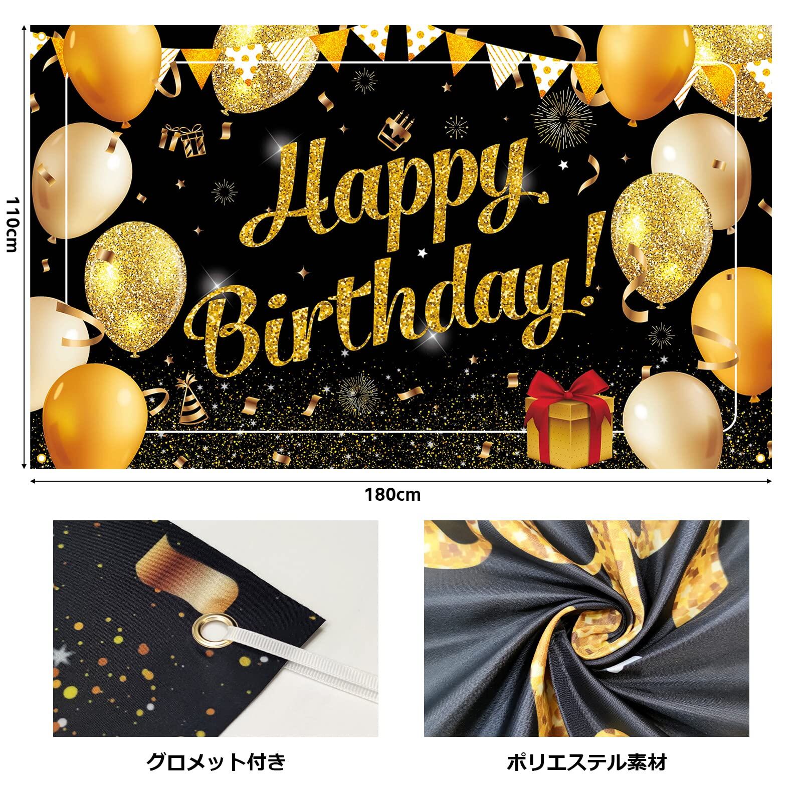 Paready バースデー タペストリー 誕生日 飾り付け 壁掛け 大判 フォトポスター 写真背景 壁飾り Happy Birthday パーティー 飾り おうちスタジオ シンプル おしゃれ 装飾 大人 女の子 男の子 ゴールド