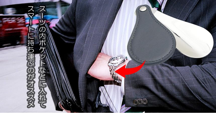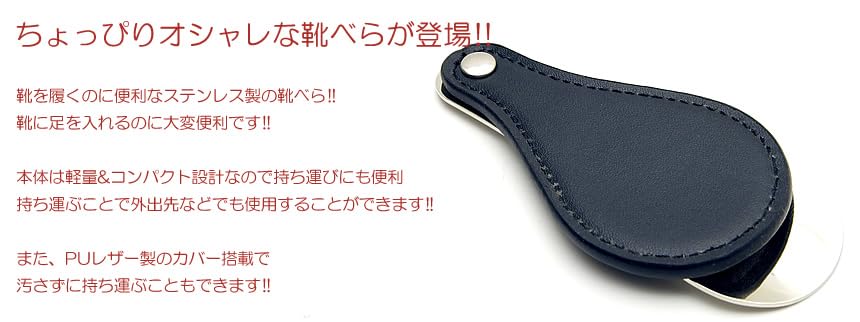 【努力特価】GoodsLand 【 持ち運び 携帯 に 】 携帯用 ミニ 靴べら 短ヘラ シューホーン ステンレス スチール PUレザー おしゃれ ブラック GD-NEWBERA