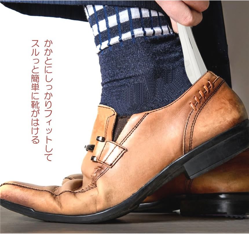 【 シンプル デザイン 】 PUレザー 製 の カバー と ステンレス製の 靴ベラ の 2つの違う素材が おしゃれ に演出。