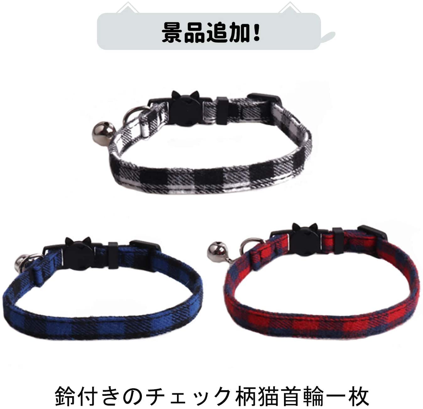 【無料追加景品の猫首輪】この猫ハーネスを購入すれば、可愛い猫ハーネスが一個無料で追加配送いたします。素敵なチェック柄に鈴がついています。可愛い猫型のバックルを引っ張って簡単に外し、とても装着簡単です。首輪の鈴がお好きに取り出します。 セット①猫用ハーネス(レッド)+猫首輪(レッドチェック柄) セット②猫用ハーネス(ブラック)+猫首輪(ブラックチェック柄) セット③猫用ハーネス(ブルー)+猫首輪(ブルーチェック柄) セット④猫用ハーネス(グレー)+猫首輪(ブラックチェック柄)