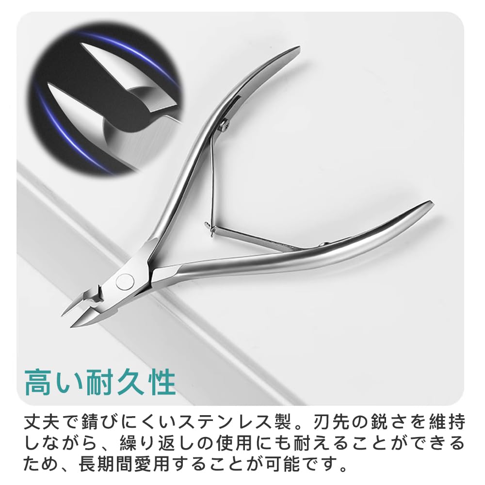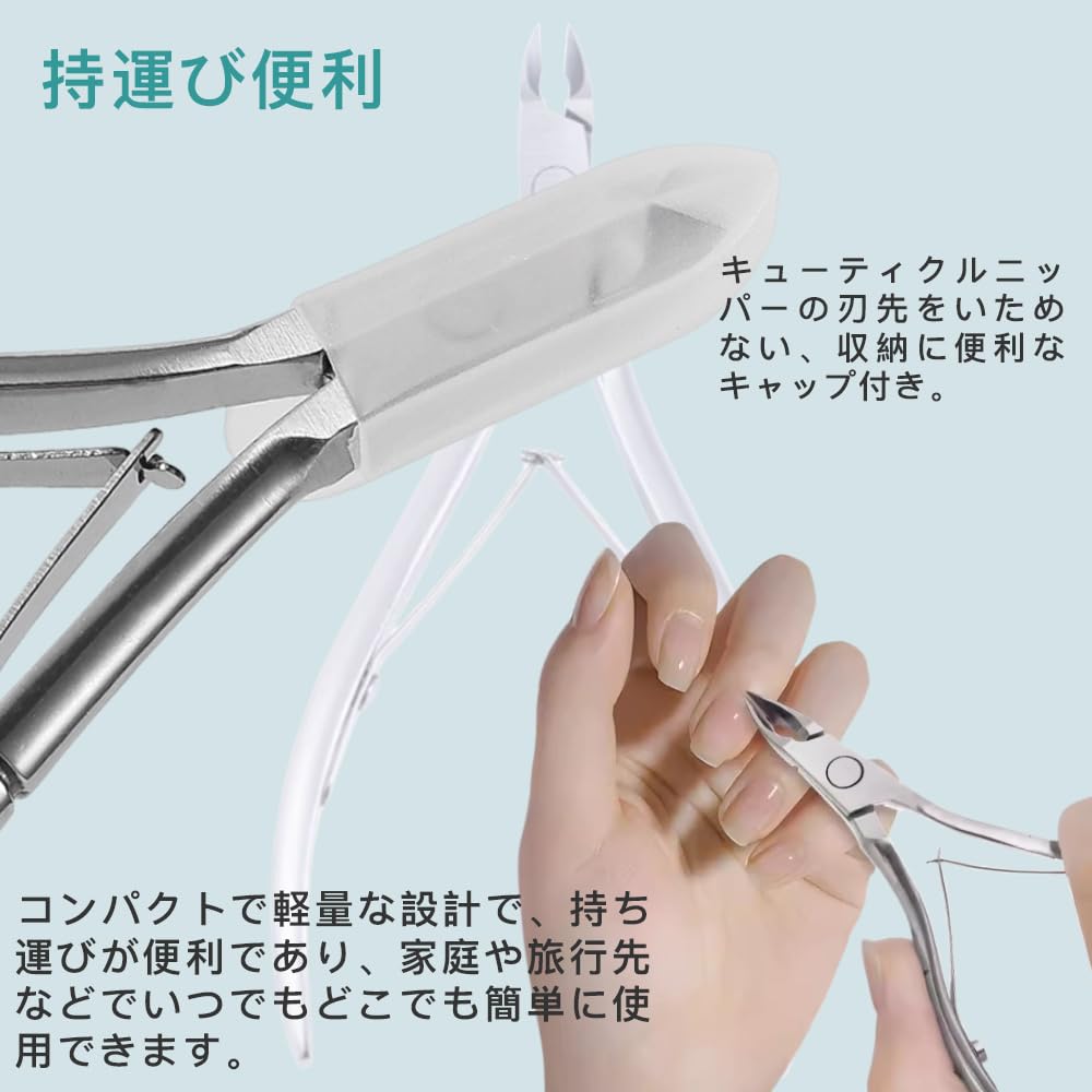 ★【高い耐久性】丈夫で錆びにくいステンレス製。キューティクルニッパーの刃先をいためない、収納に便利なキャップ付き。