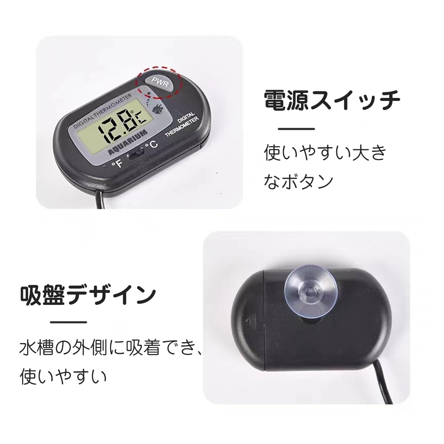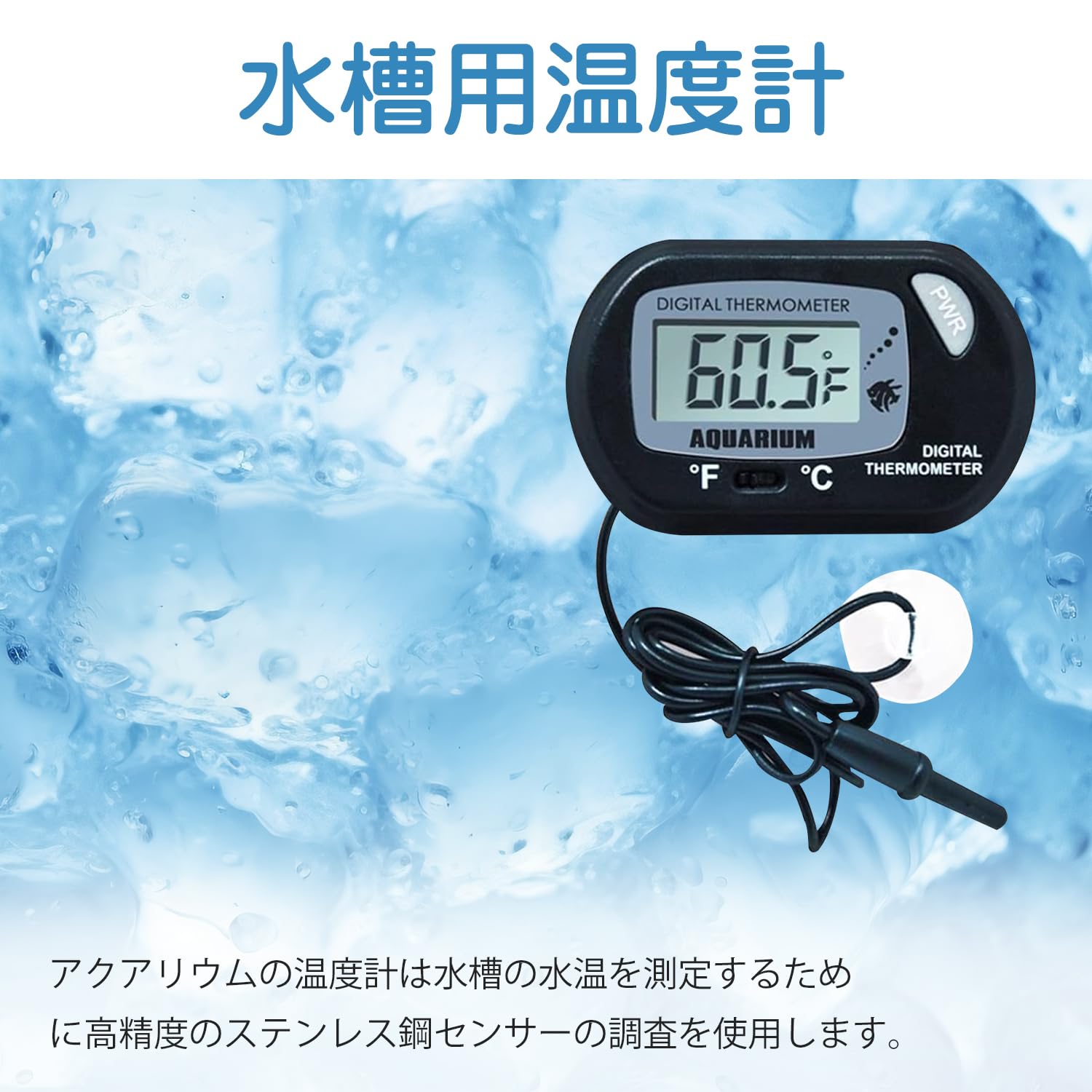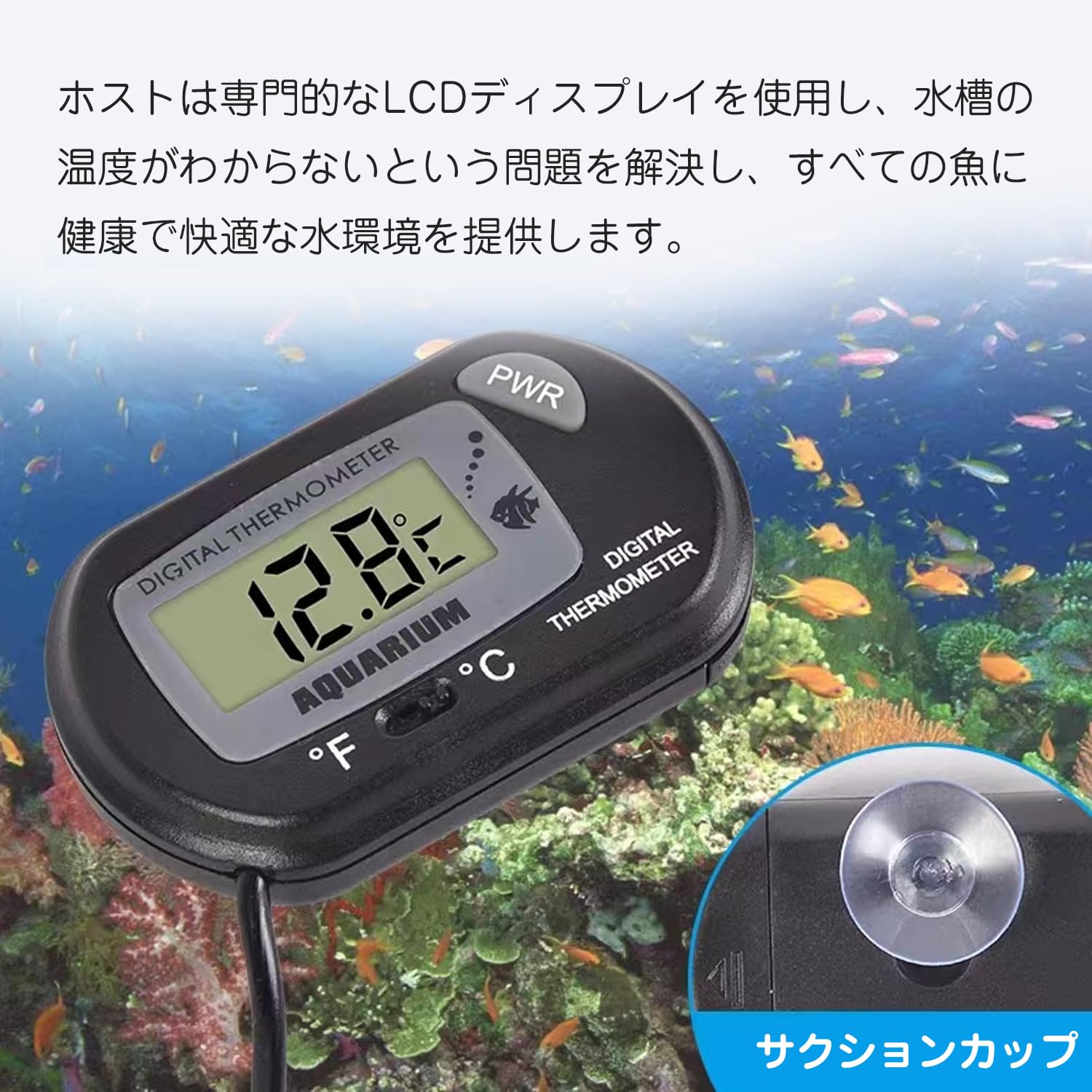 【特価処分】水温計水槽 水温計デジタル LCDデジタル温度計 金魚水槽、観賞魚、熱帯魚や水族館などに適したプローブ、コンバーチブル摂氏/華氏、水温制御付き