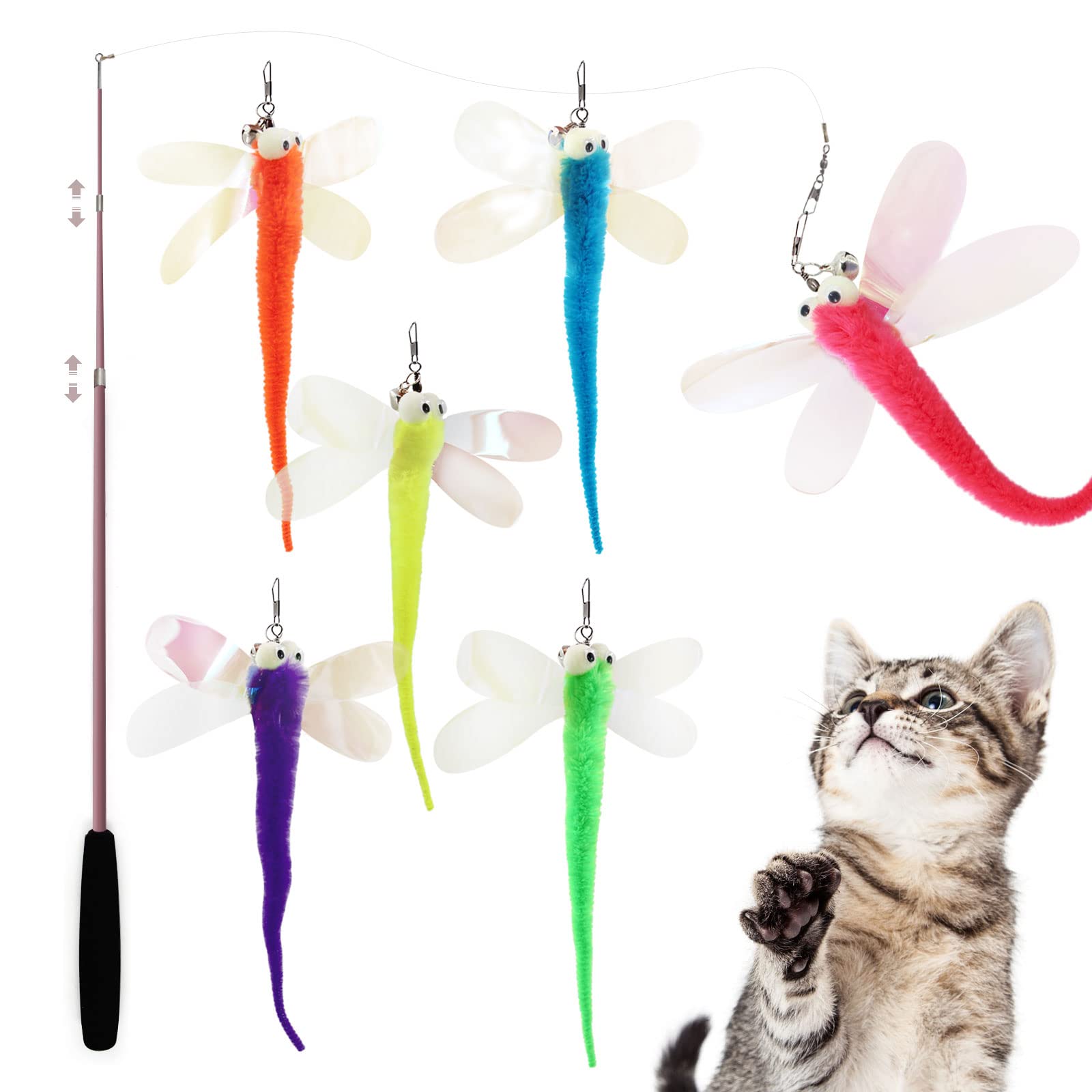【新着特価】SONGWAY 猫 おもちゃ 猫じゃらし ねこおもちゃ ねこじゃらし昆虫版 6点飛ぶトンボ 釣り竿付き