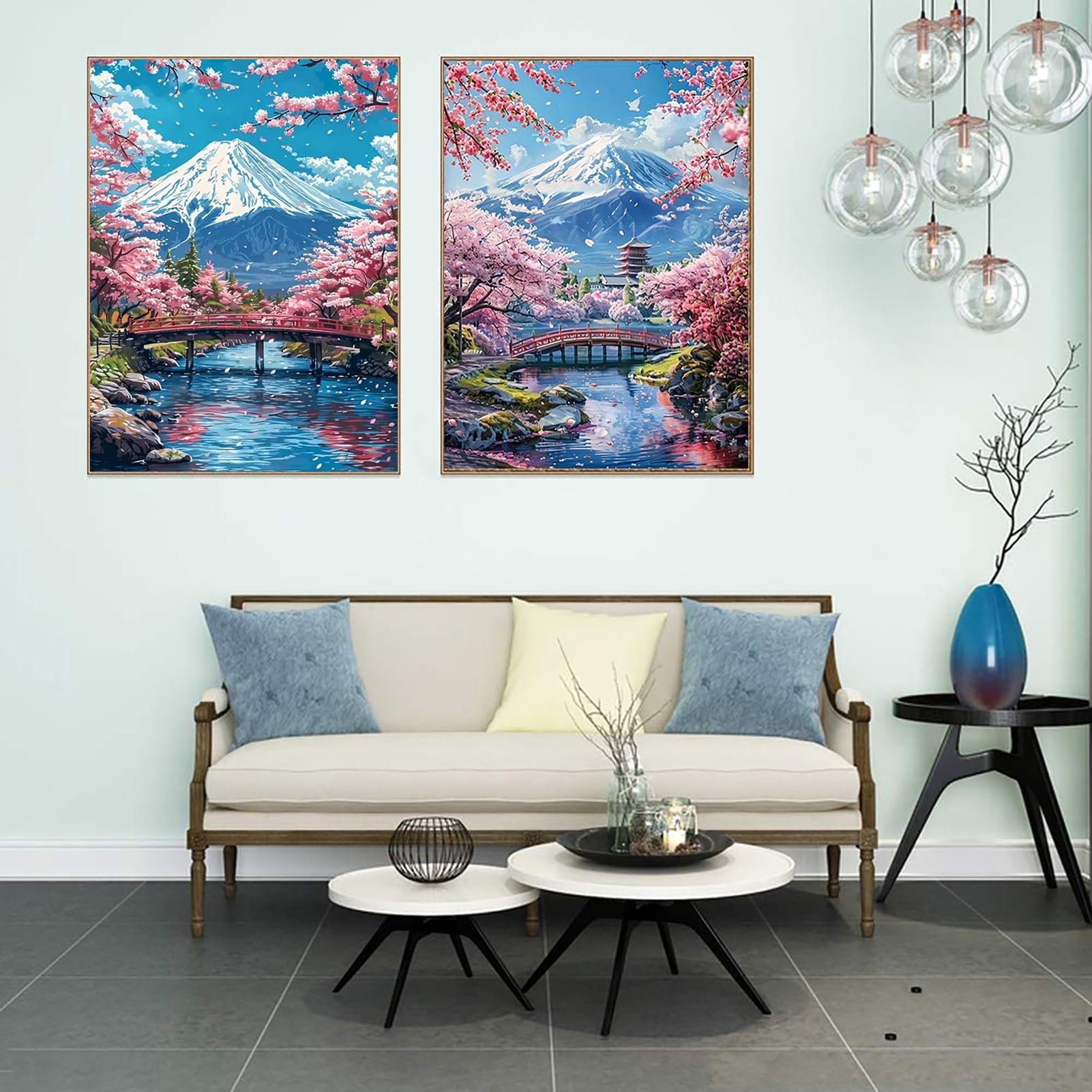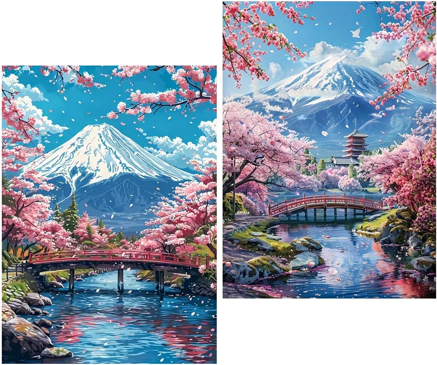 Amyaker ダイヤモンドアート キット 四角いビーズ 全面 2個セット ダイアモンドビーズ絵画キット DIY 手作り絵画 モザイクアート 5D モザイクアート ダイヤモンド塗装 全面貼り付けタイプ 30x40cm 富士山 さくら
