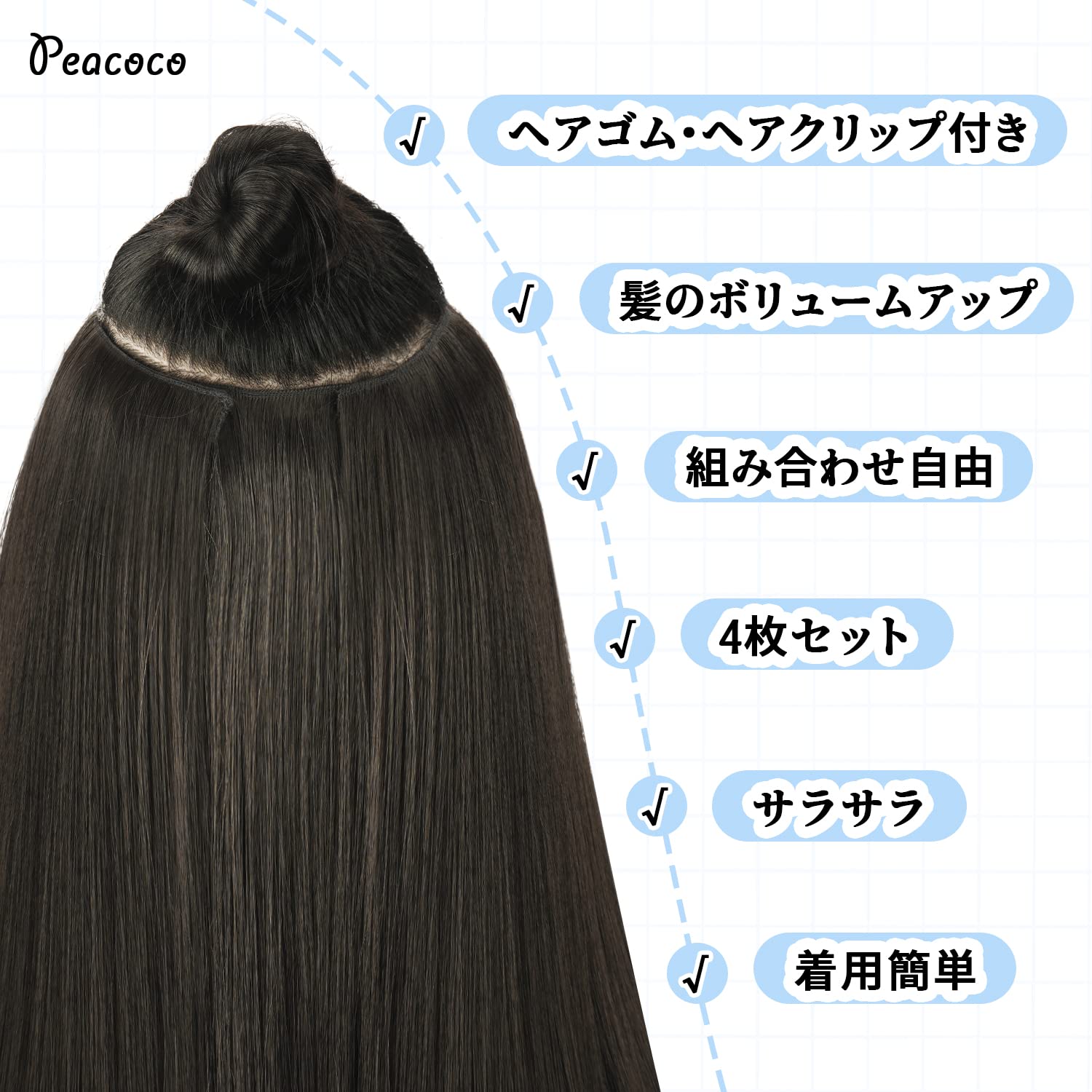 Peacoco 襟足ウィッグ 4枚セット 40/50/60cm クリップ式 エクステ ワンタッチ サラサラ 自然 普段使い向け 装着簡単 ストレート ロング ワンタッチエクステ ハーフウィッグ つけ毛