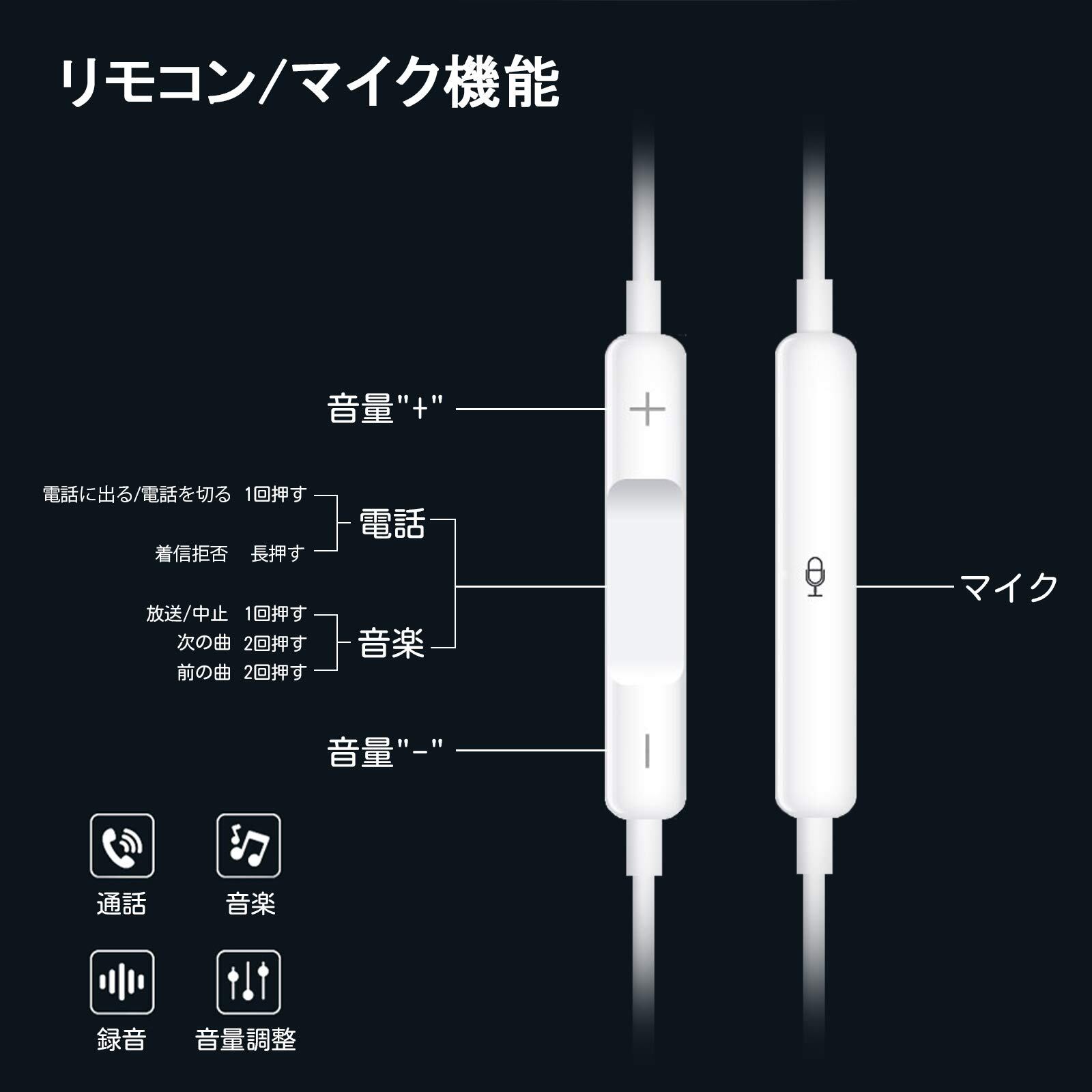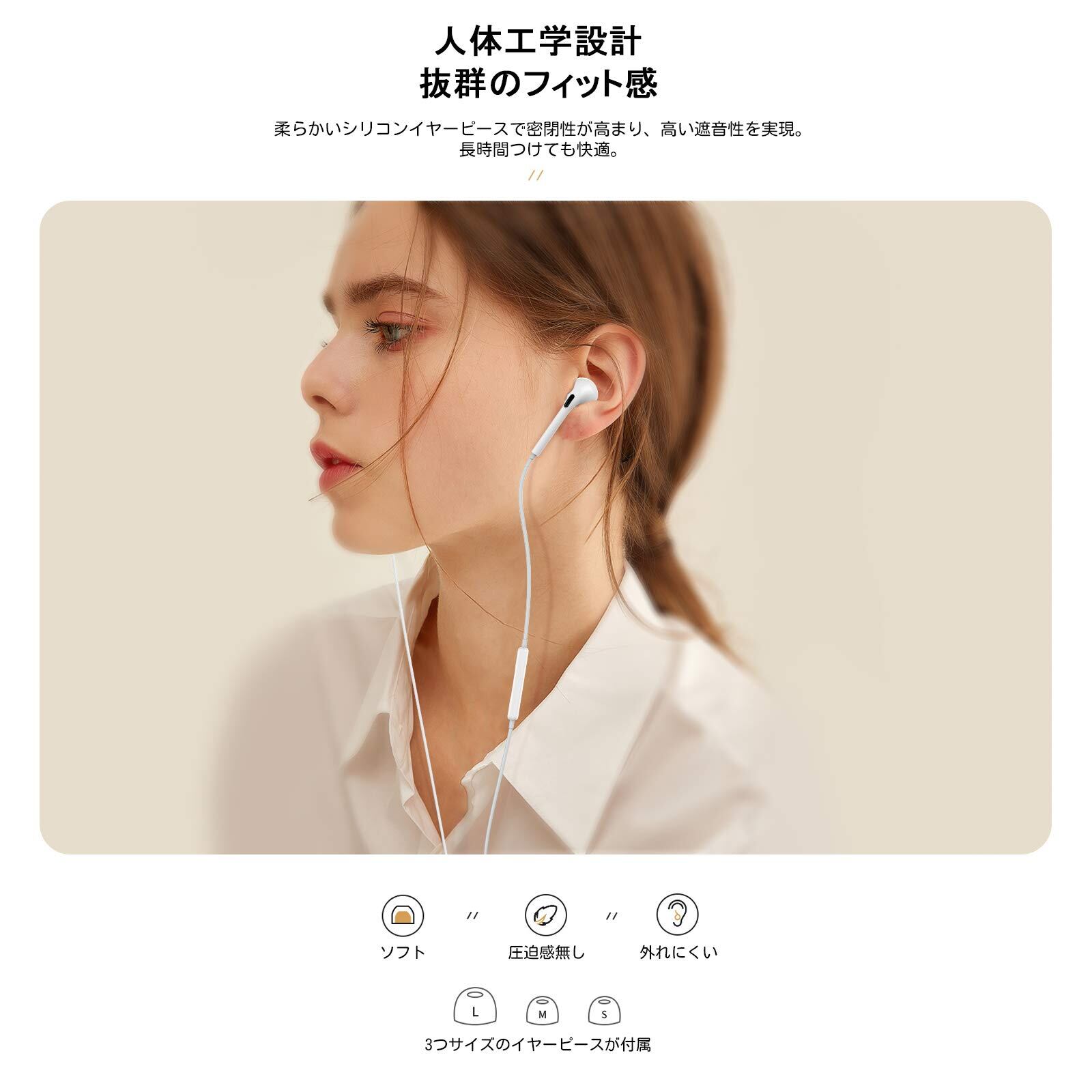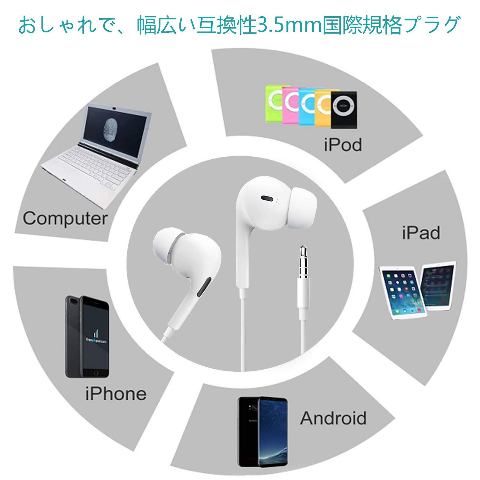 【音質強化バージョン】イヤホン 有線イヤホン 3.5mmジャック マイク付き インナーイヤー型 HIFI音質 通話可能 クリア通話 リモコン テレワーク 音量調節 全ての3.5mmインターフェース機器に対応 White 白