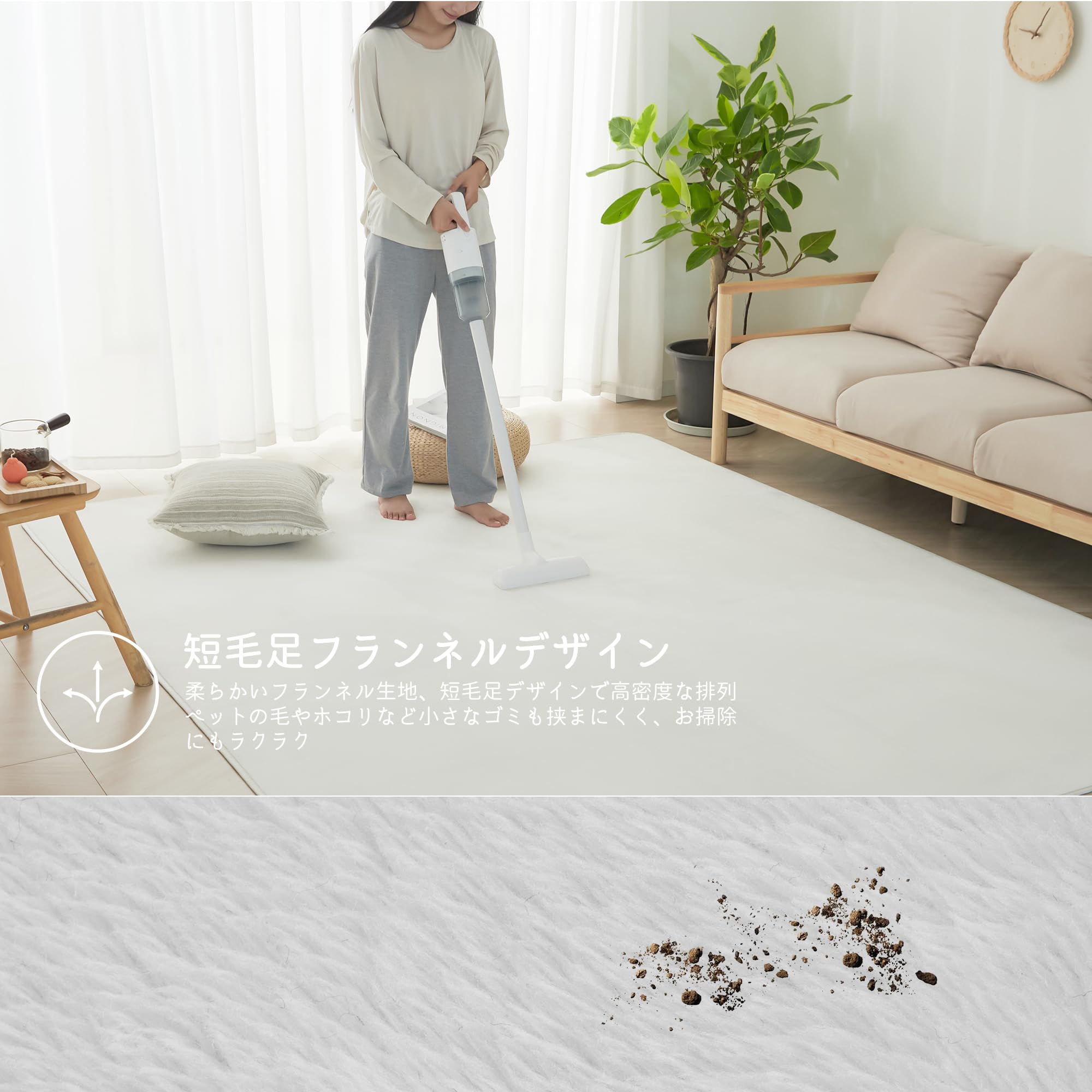 ??【抗菌・防臭、お手入れ簡便】ラグマットは短毛足のため掃除機で簡単に掃除できる、水洗いも可能です。さらに、抗菌・防臭加工が施されており、内外から清潔を保つことができます。