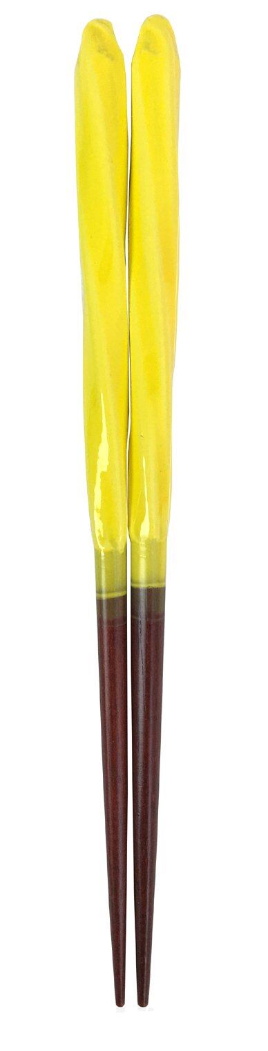 アオバ 箸 天然木 あめ玉ネジリ 黄 18cm