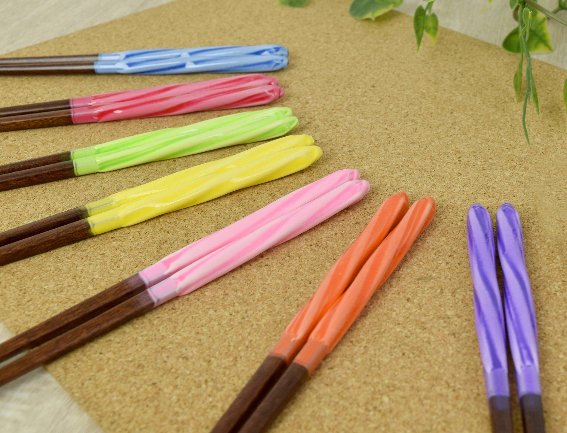 持ち手の下から箸先は馴染みのある天然木で、箸先が細くはさみやすい。和ごころと遊び心がつまったお箸。