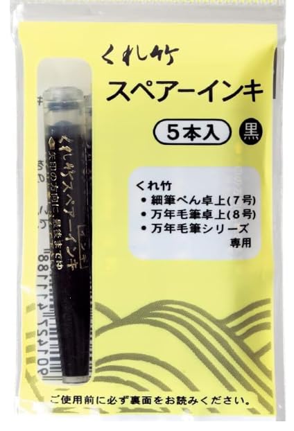 呉竹 筆ぺんスペアーインキ 黒 ヘッダー付 5本組 DAN105-99H 0.75×5.2cm 重量:17g 素材:水性染料インク 細筆ペン・万年毛筆専用 万年毛筆専用スペアーインキです。 【対応する商品】 細筆ぺん卓上(7号) DH150-7B 万年毛筆卓上(8号) DP150-8B