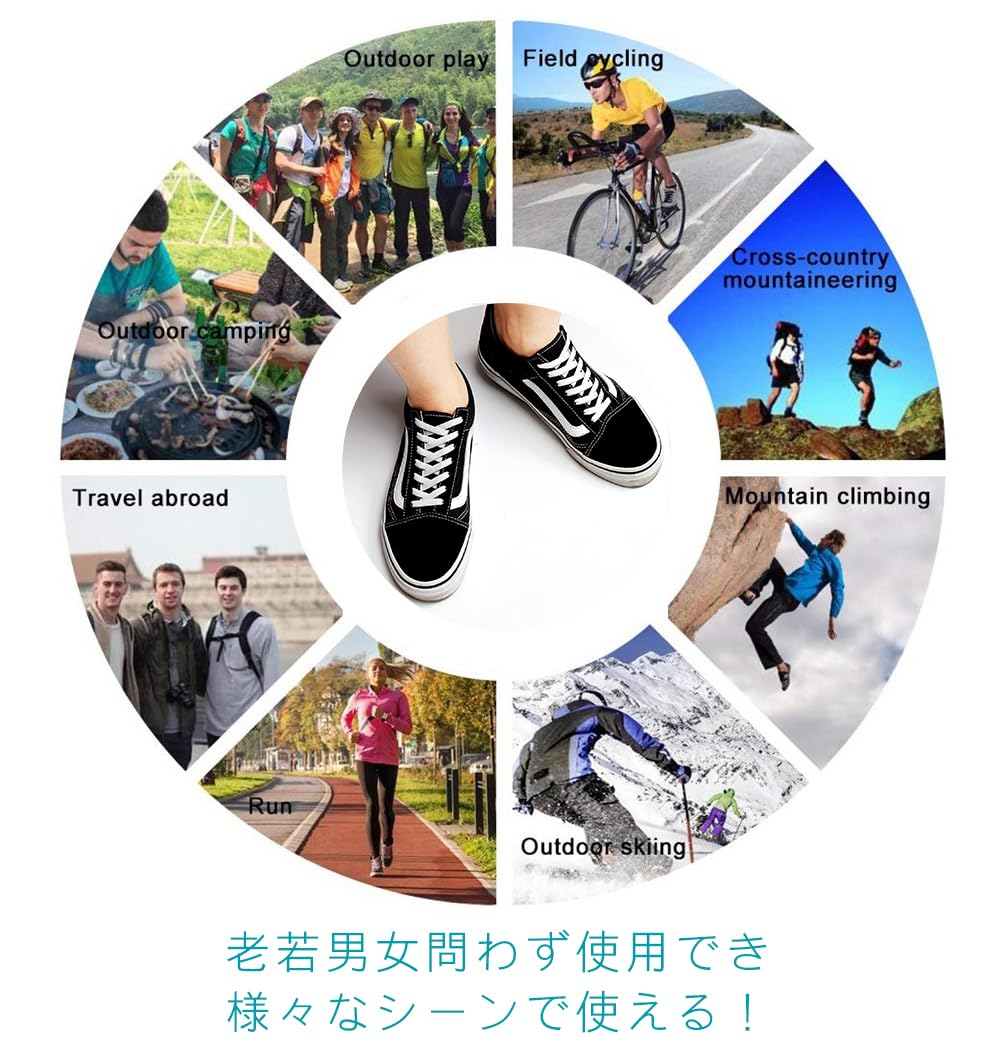 結ばず解けずストレスフリー!スポーツやアウトドアなど快適性アップ!