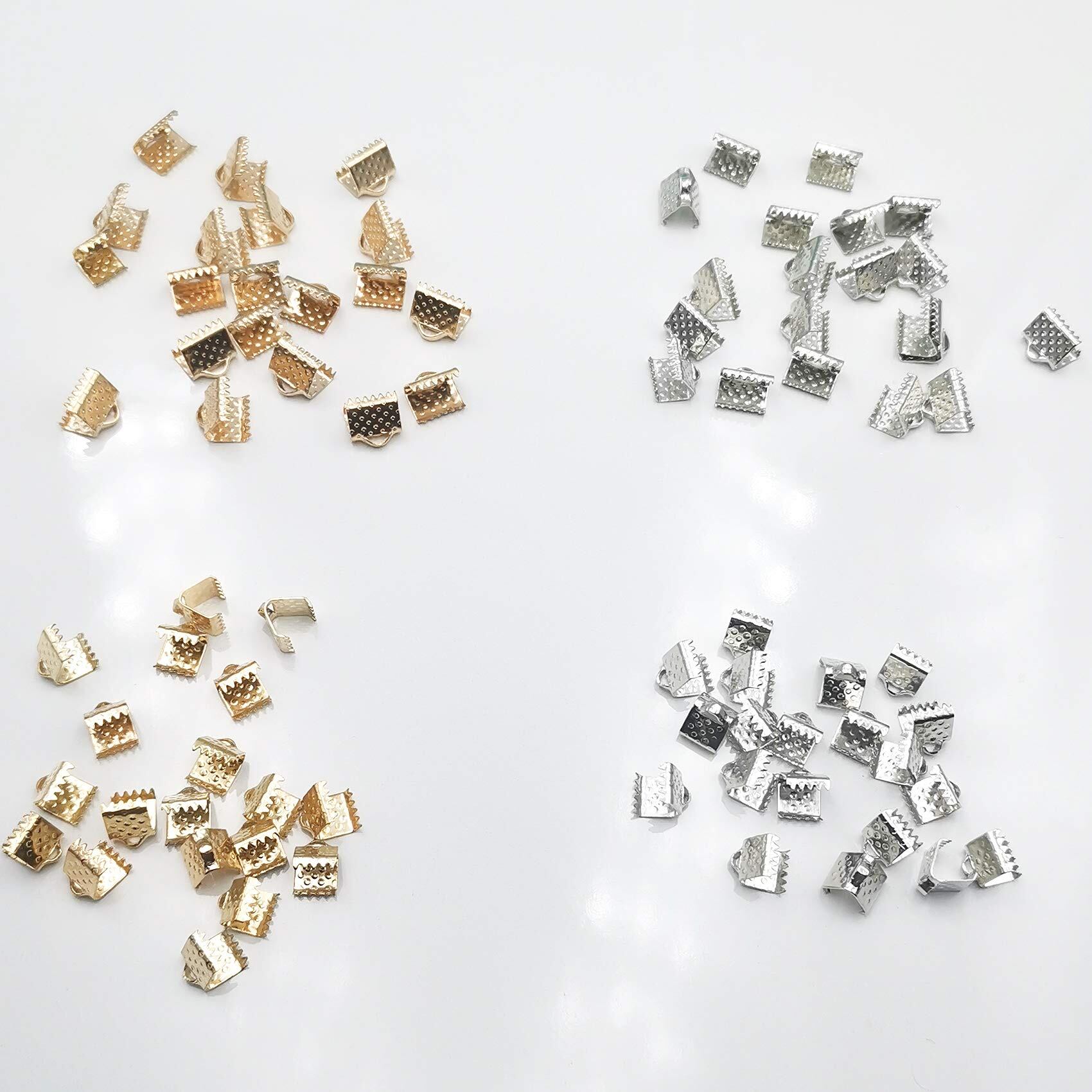 【在庫のみ】【BEAUTY PLAYER】ワニ口 クリップ 6/8mm 約80個 4種 各20個 紐止め リボン留め具 接続金具 アクセサリー 基礎パーツ 手芸用品 ゴールド&シルバー (6mm+8mm)